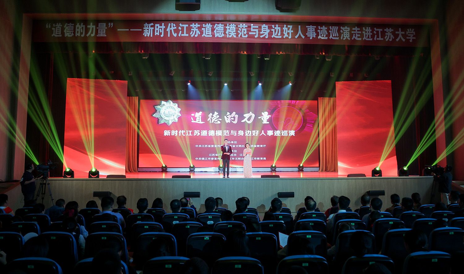 10月25日,由中共江苏省委宣传部、江苏省文明办、江苏省教育厅主办,江苏省广播电视总台、beat365亚洲体育官方网站、中共镇江市委宣传部、镇江市文明办、镇江市教育局承办的“道德的力量”——新时代江苏道德模范与身边好人事迹高校巡演走进beat365。