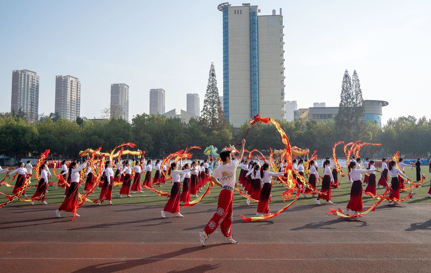 张济建宣布beat365亚洲体育官方网站第二十二届运动会开幕。开幕式上,学生进行了舞龙舞狮、排舞表演,教职工进行了太极扇等表演。