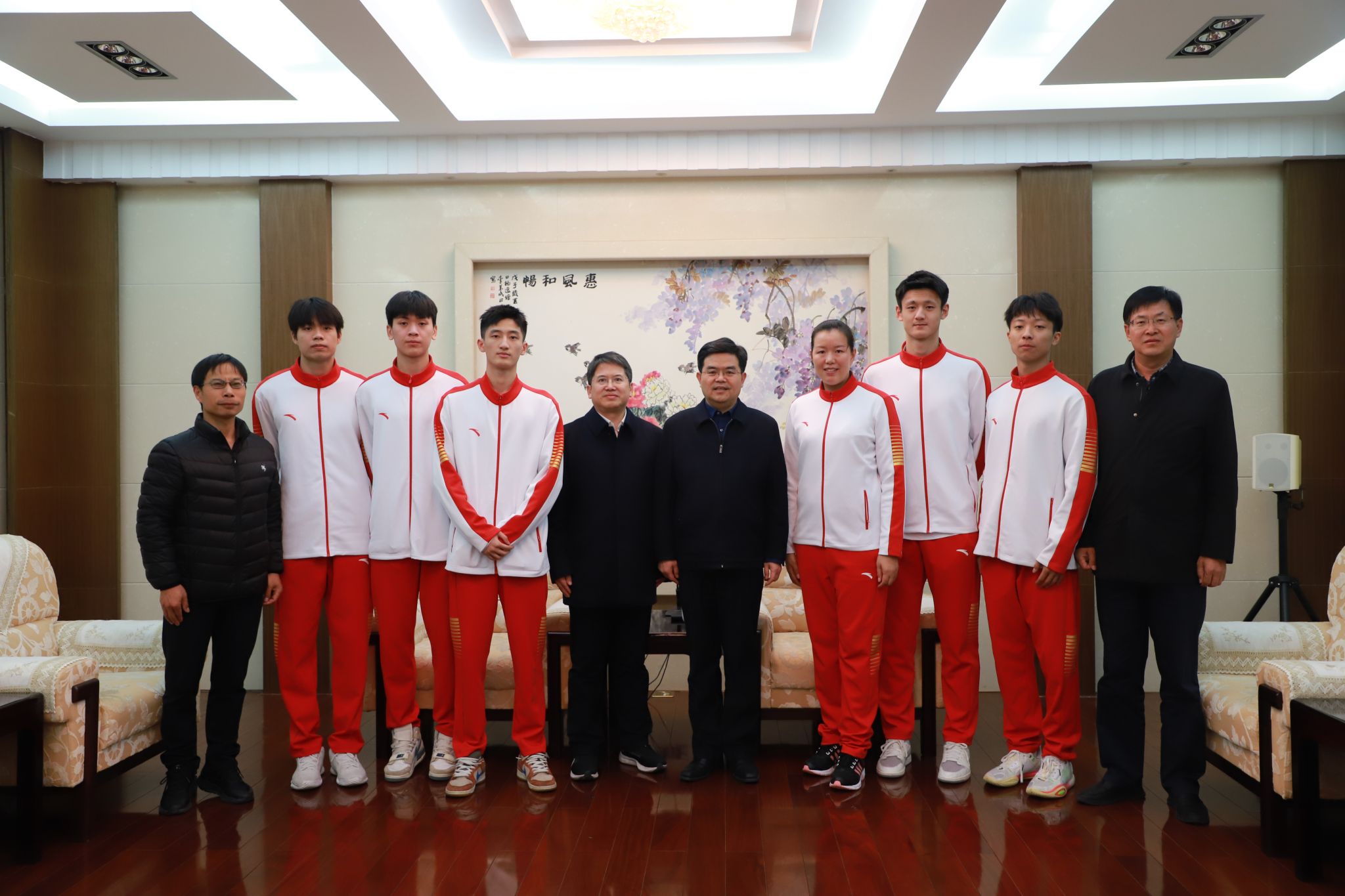 11月20日下午,校党委书记李洪波,校党委常委、副校长、校体工委主任邹小波在行政一号楼会议室接见获得第一届全国学生(青年)运动会男排冠军的beat365教练员和运动员。