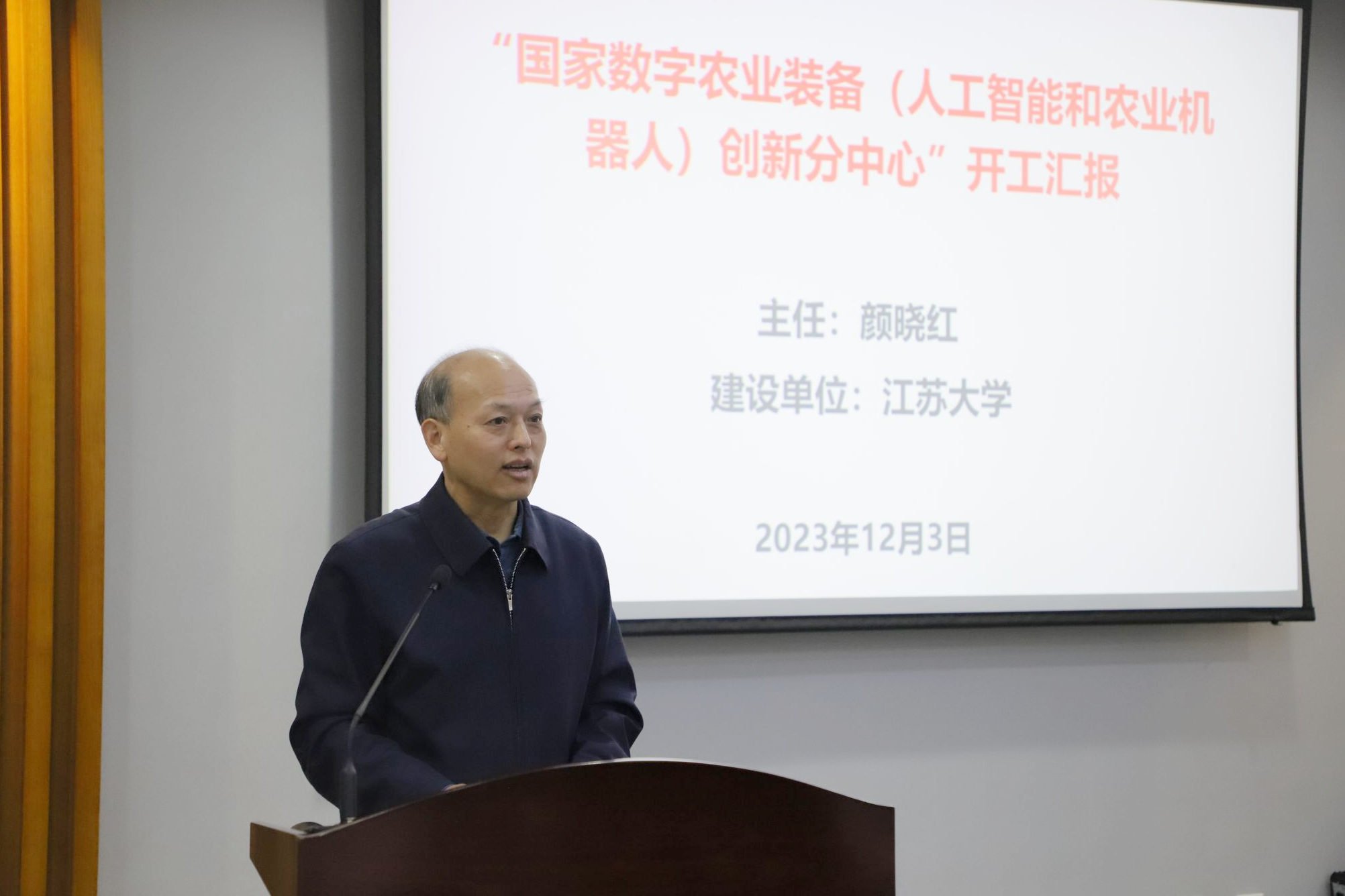 12月3日,国家数字农业装备(人工智能和农业机器人)创新分中心开工仪式在耒耜大楼举行。中国工程院院士赵春江、陈学庚,省农业农村厅副厅长曹丽虹,省互联网农业发展中心主任徐茂、副主任吴昊,beat365亚洲体育官方网站原校长、分中心主任颜晓红,校长邢卫红,副校长李红、王景全等出席了开工仪式。开工仪式由李红主持。