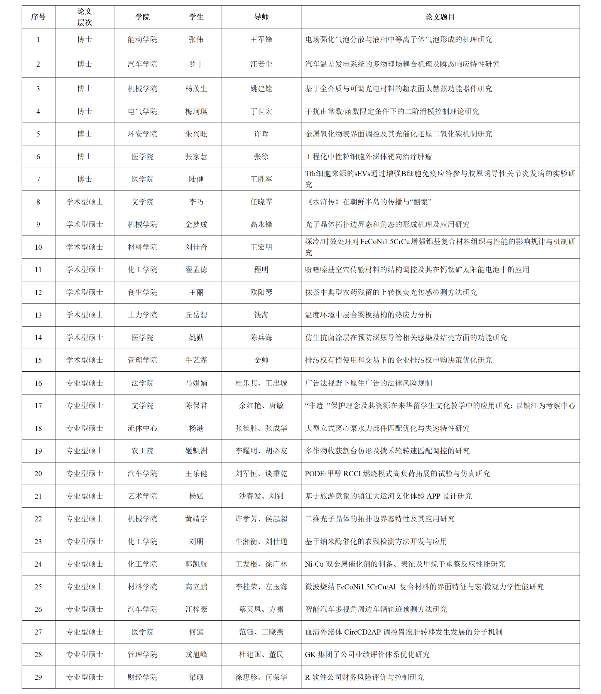 江苏省优秀博士硕士学位论文经过学校初评推荐、省研究生教指委评审、省学位办综评及专家委员会审定等程序产生,旨在加强我省研究生教育质量保障体系和评选激励机制建设,提高全省研究生学位论文质量和学位授予质量。