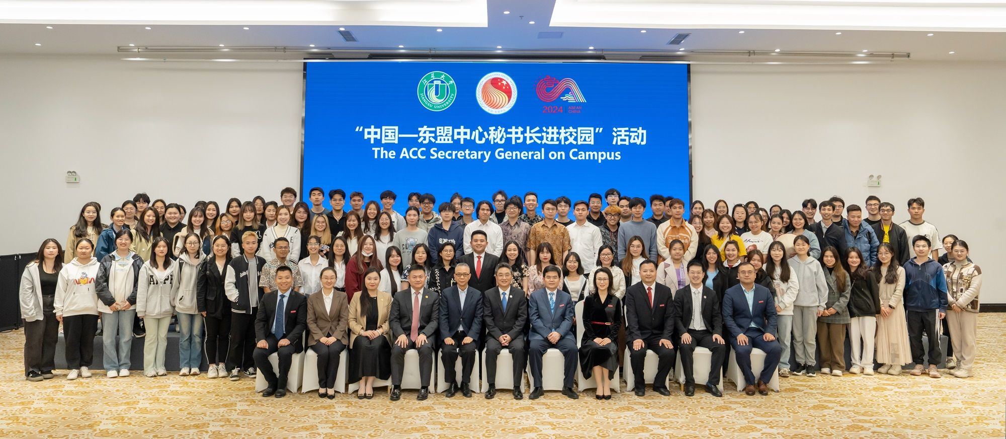 史忠俊就中国—东盟关系发表《以活力、智慧、责任助力中国—东盟关系发展》演讲。史忠俊介绍了东盟发展历程,用“友谊”“承诺”“期待”“协同”四个关键词阐释了中国—东盟关系发展的深厚基础。他表示,中国—东盟中心作为中国与东盟唯一的政府间国际组织,致力于促进中国—东盟在贸易、投资、教育、文化、旅游和信息媒体等领域的友好交流和务实合作。他指出,青年不仅是中国和东盟未来发展的支柱,也是连接和深化双方友好关系的桥梁和开拓者,希望中外学生以开放包容的精神推动区域一体化进程,携手共建中国—东盟美好家园。