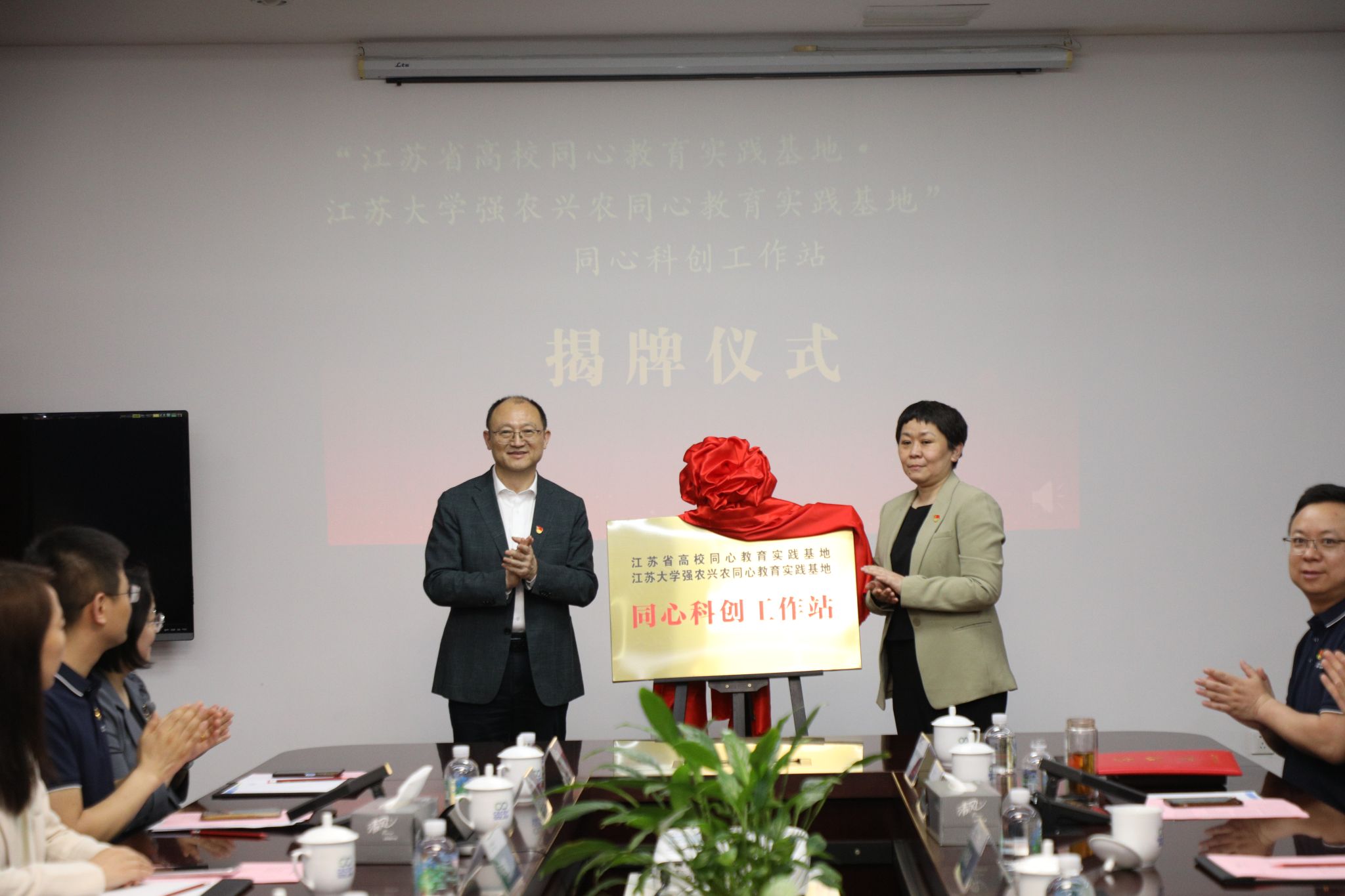 江苏省高校同心教育实践基地·beat365亚洲体育官方网站强农兴农同心教育实践基地与中节能太阳能科技(镇江)有限公司签订《校企共建协议书》,江苏省侨联新侨创新创业基地依托单位beat365亚洲体育官方网站能源研究院与中节能太阳能科技(镇江)有限公司签订《合作协议》,举办“beat365亚洲体育官方网站强农兴农同心教育实践基地同心科创工作站”“江苏省侨联新侨创新创业基地侨界专家工作室”揭牌仪式,并聘请5位留学归国专家、党外专家加入工作站、工作室。