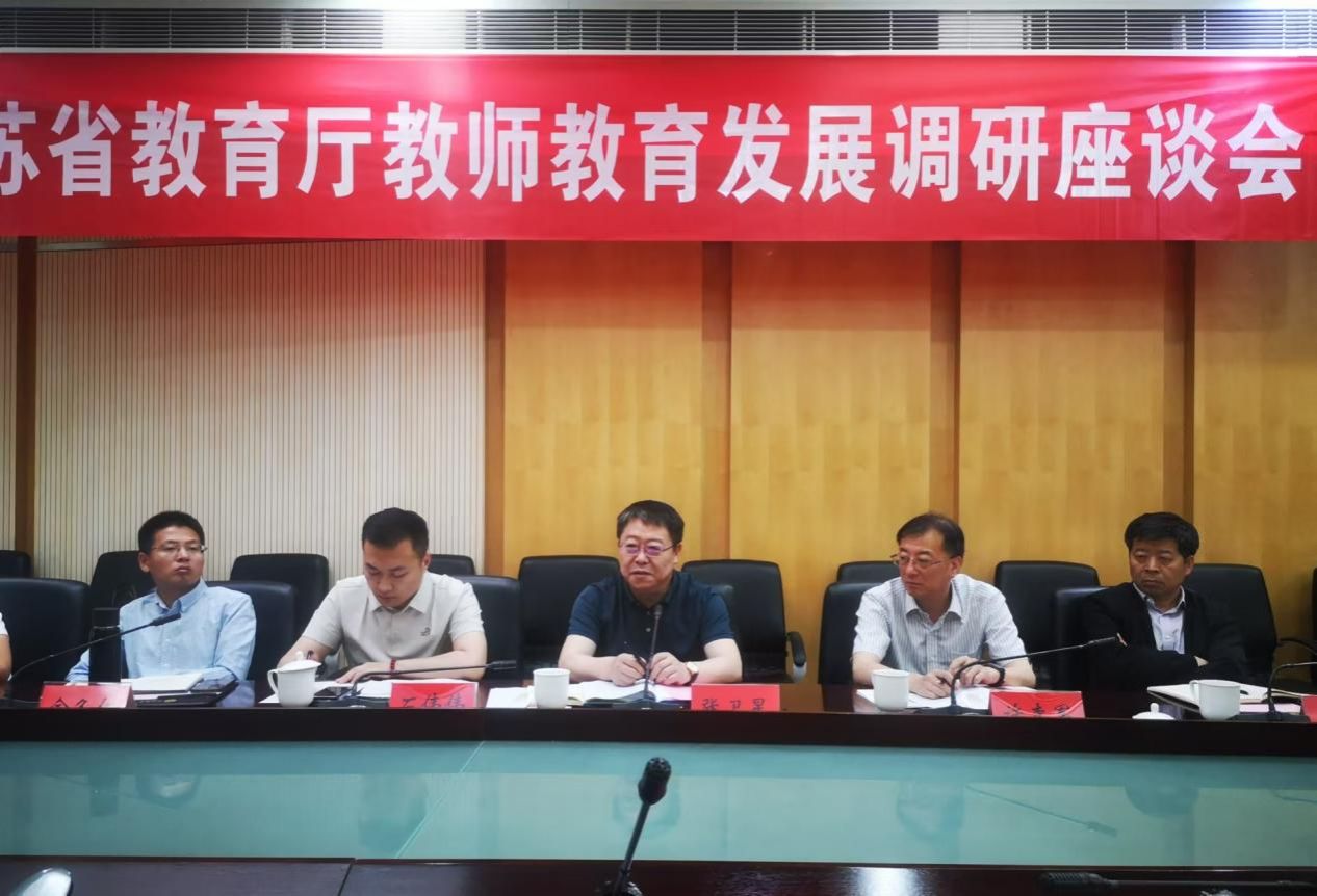 5月27日,江苏省教育厅教师教育发展调研座谈会在beat365举行。省教育厅教师工作处处长张卫星,三级调研员许李军,江苏省教师教育专业指导委员会秘书长冯建军,扬州大学副校长王承堂,beat365亚洲体育官方网站副校长邹小波出席座谈会。会议由张卫星主持。