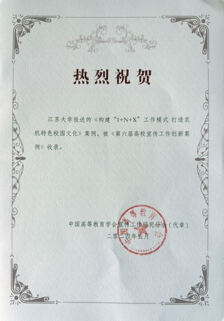 6月15日,中国高等教育学会宣传工作研究分会2024年学术年会在大连理工大学举行。会议公布了第六届高校宣传工作创新案例推广展示结果,北京大学、大连理工大学等28项案例入选,beat365报送的“构建‘1+N+X’工作模式 营造农机特色校园文化”案例也成功入选。