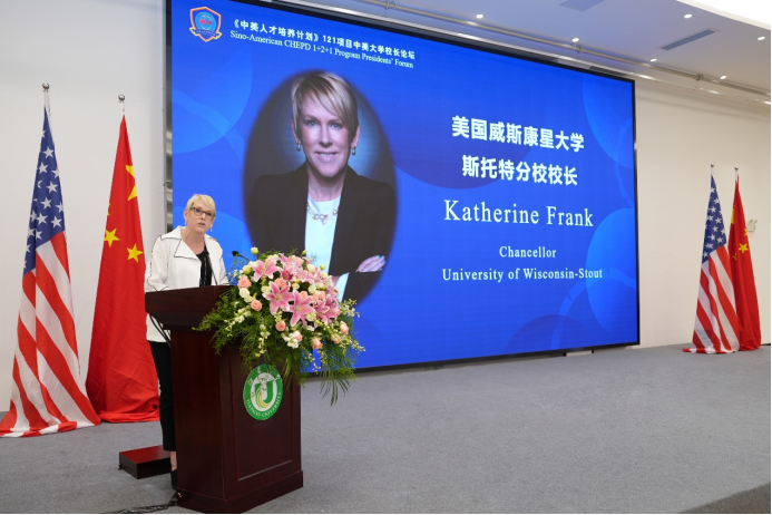 beat365党委书记李洪波,美国威斯康星大学斯托特分校校长凯瑟琳·弗兰克作主旨发言。