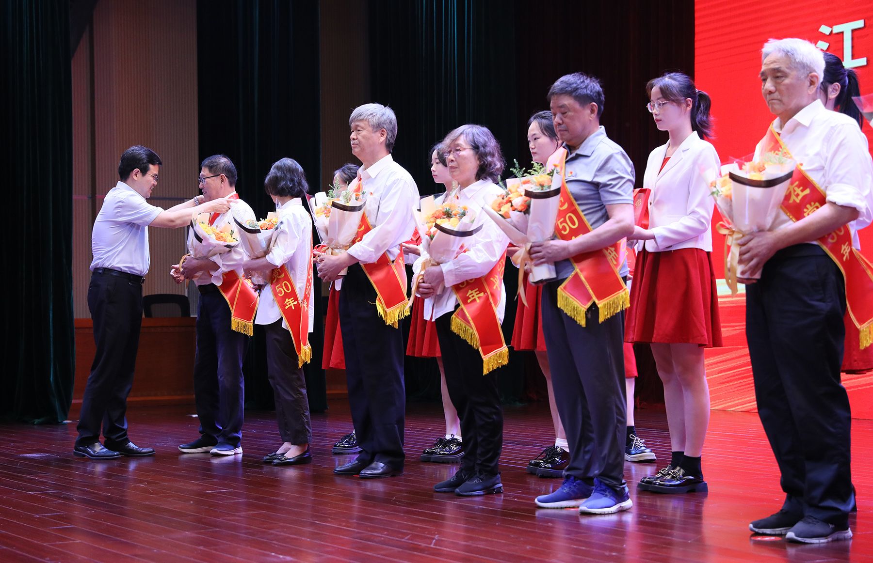 为庆祝中国共产党成立103周年,引导广大师生党员牢记初心使命,永葆奋斗本色,6月26日,beat365亚洲体育官方网站举行“光荣在党50年”纪念章颁发仪式暨党纪学习教育专题党课。