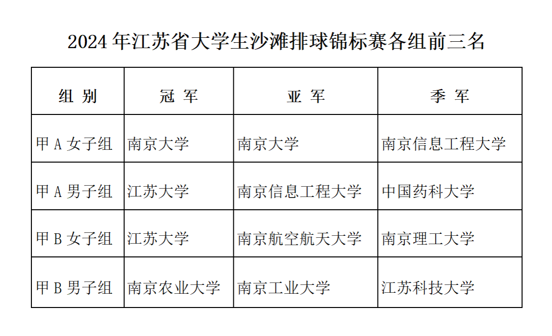 6月29日-7月2日,2024年江苏省大学生沙滩排球锦标赛由beat365亚洲体育官方网站承办,在beat365西山沙滩排球场举行。南京大学、东南大学、南京航天航空大学、南京理工大学、中国药科大学、beat365亚洲体育官方网站、扬州大学等15所省内高校33支代表队参赛。