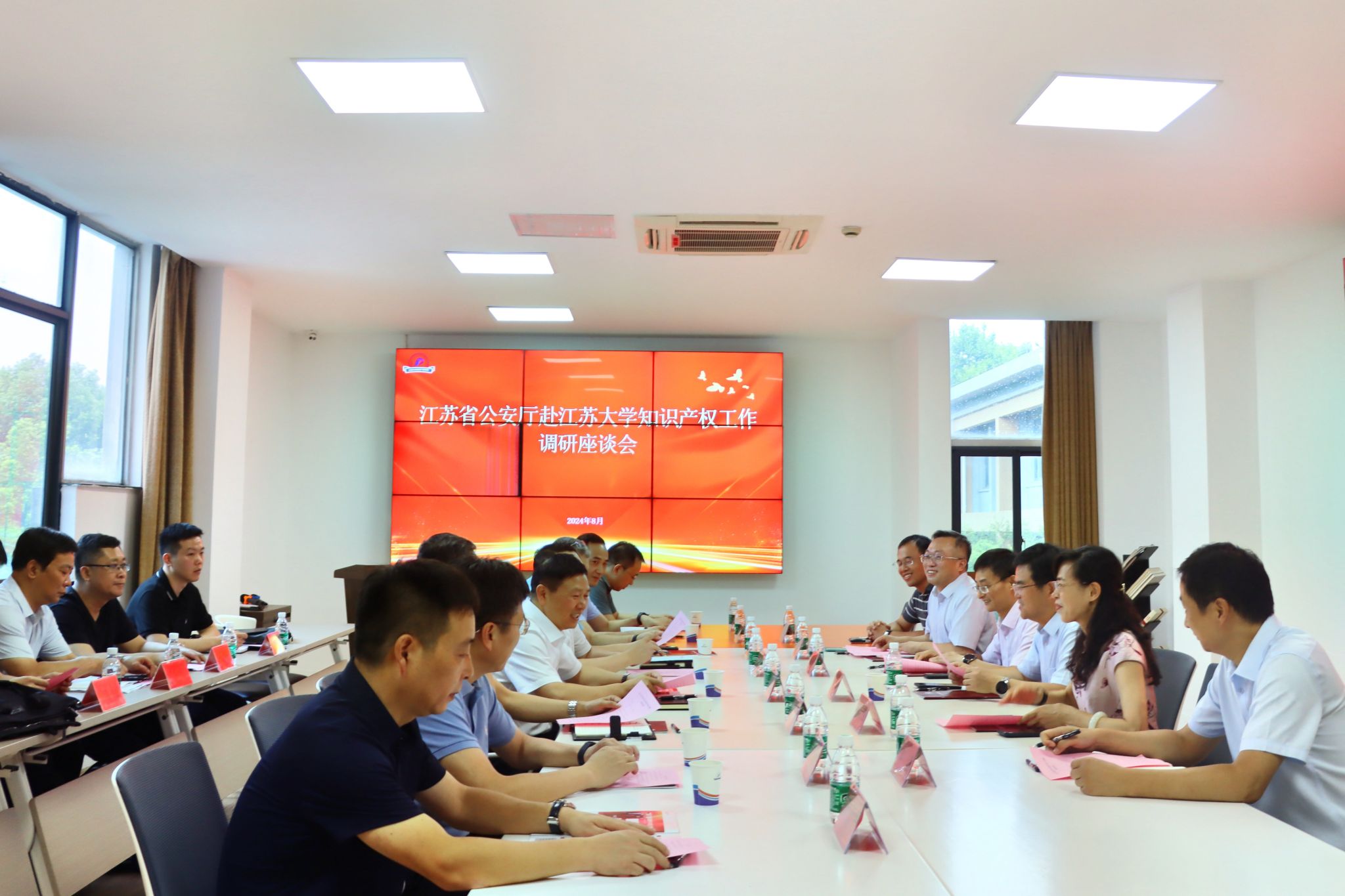 8月21日,江苏省公安厅党委委员、副厅长陈红淦一行到beat365调研知识产权工作。校党委书记李洪波,镇江市副市长、市公安局局长袁修来等出席座谈会。知识产权学院院长赵观兵主持会议。