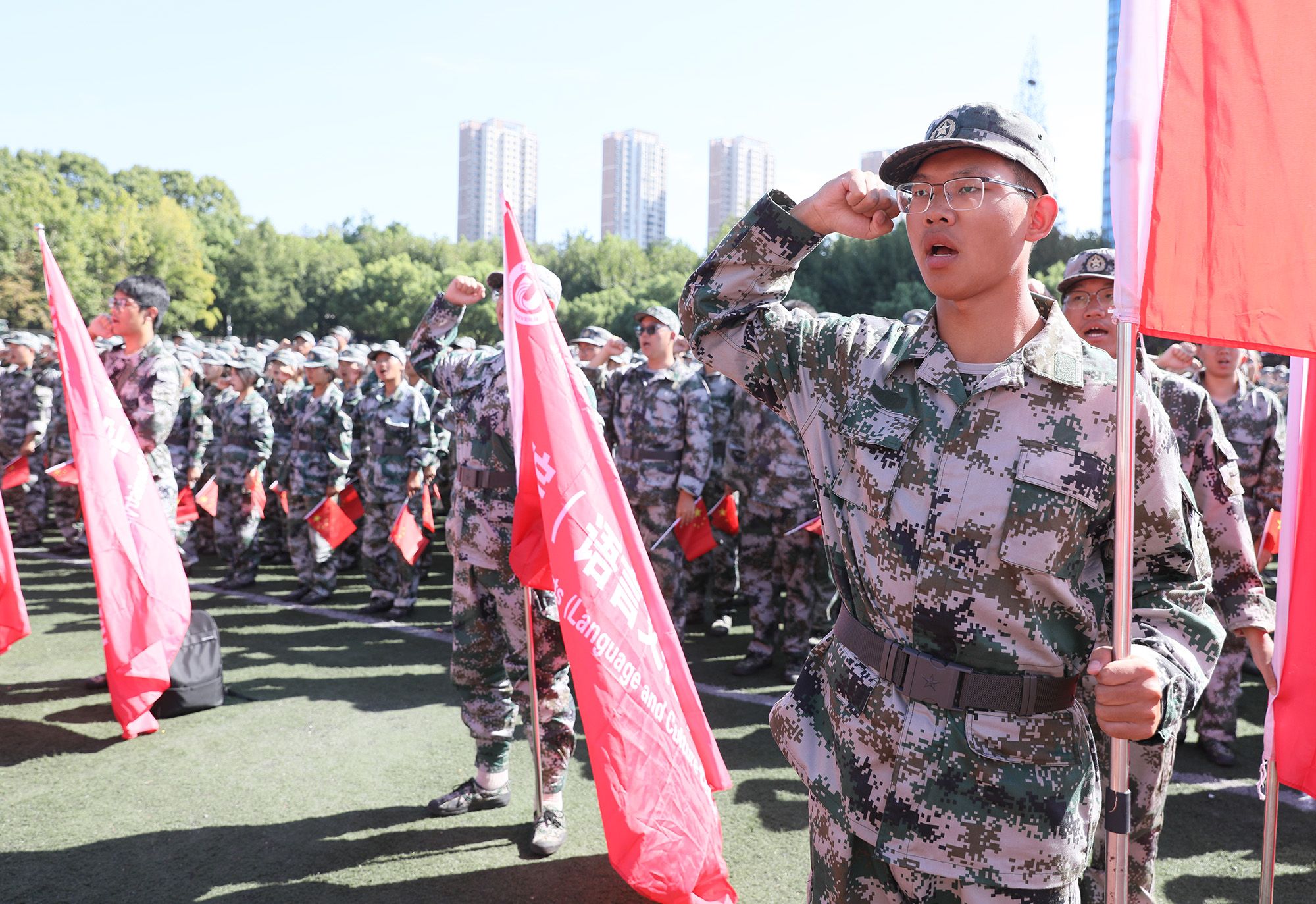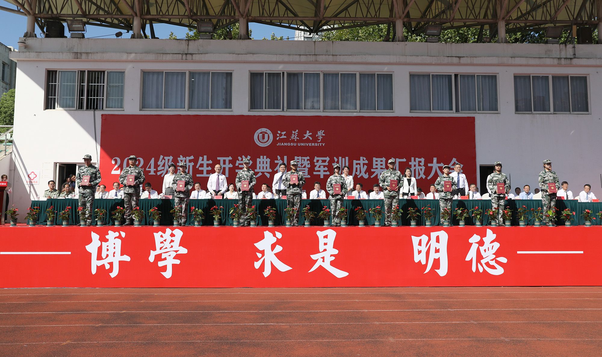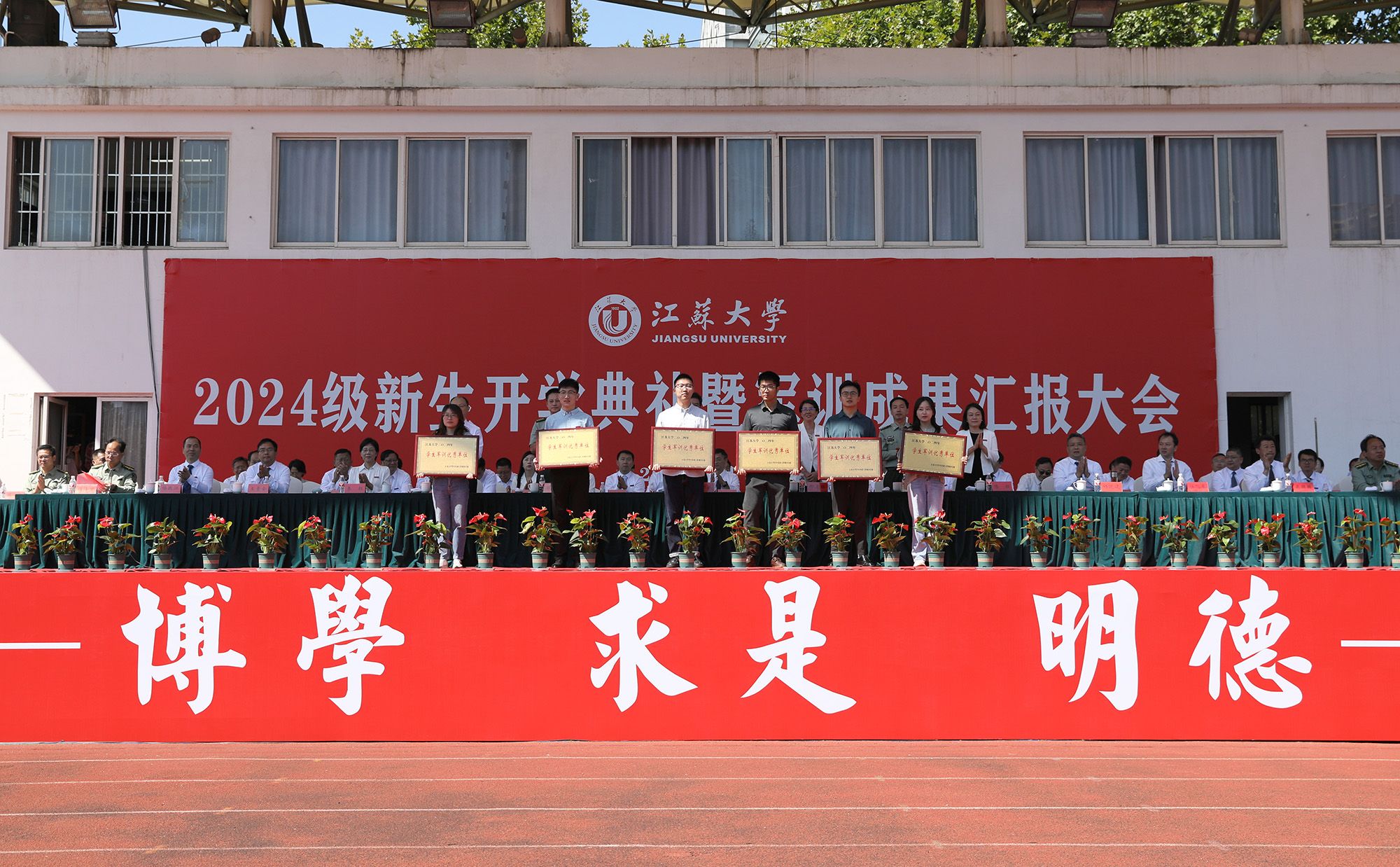 开学典礼后举行了2024级本科生军训成果汇报大会。