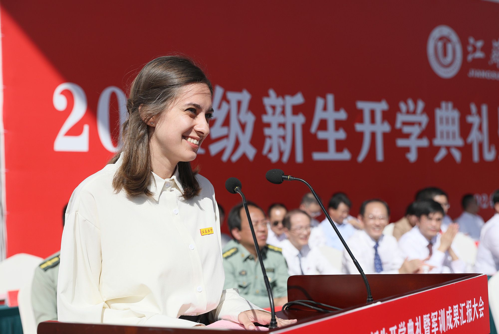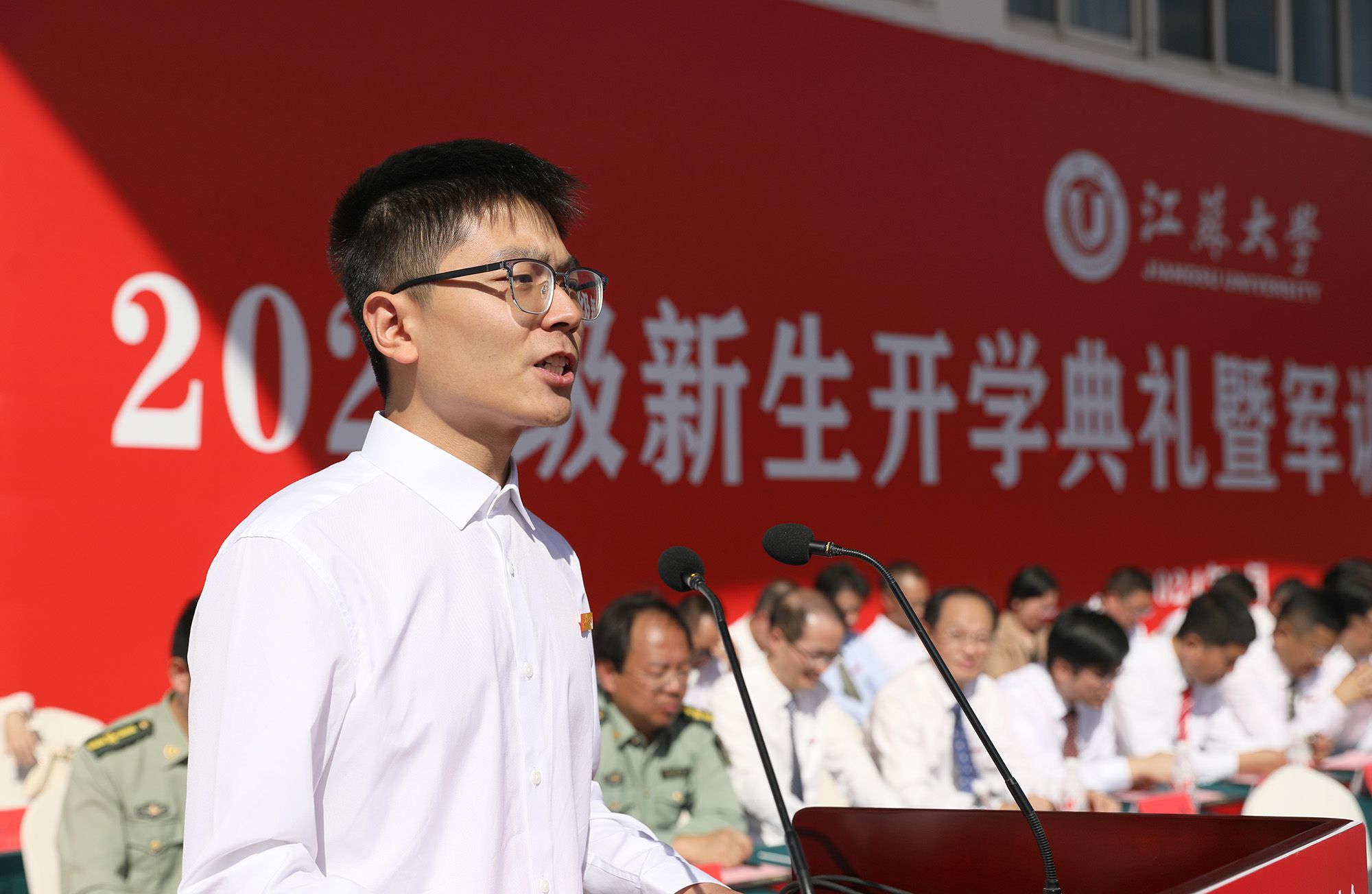 教师代表、国家水泵工程中心博士生导师周岭教授,校友代表、电气学院2022届本科毕业生、澳门微电子国家重点实验室在读博士生惠文豪,老生代表、校研究生会主席团成员高晓旭,新生代表、财经学院应用经济学专业硕士生张晓辰,新生代表、汽车学院车辆工程专业本科生周天硕,新生代表、管理学院工商管理专业留学生伊珊分别在典礼上发言。
