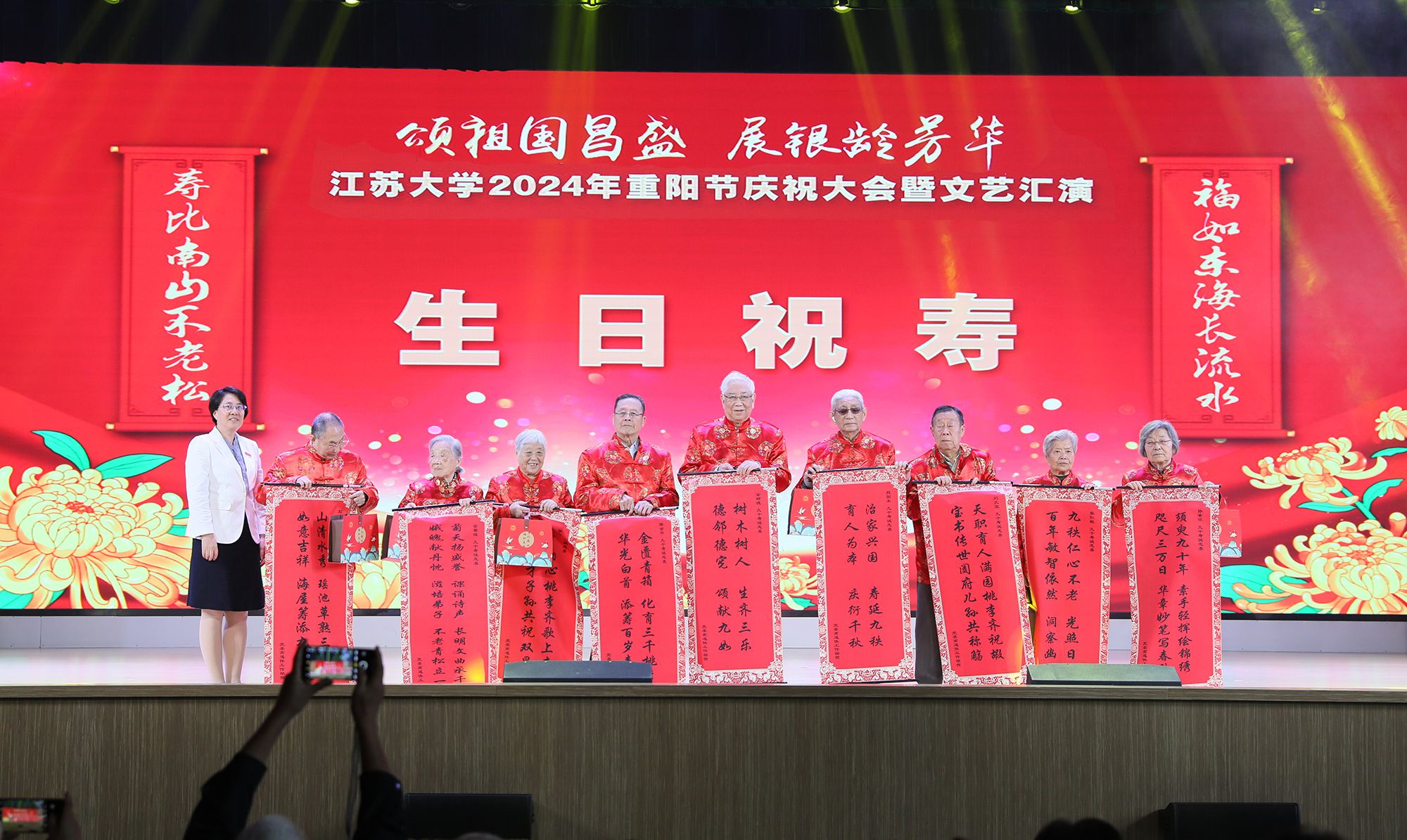今年共有172位整生日寿星,学校为他们发放了生日慰问金,准备了祝寿礼品。邢卫红向90岁寿星代表赠送了祝寿礼品和祝寿楹联。