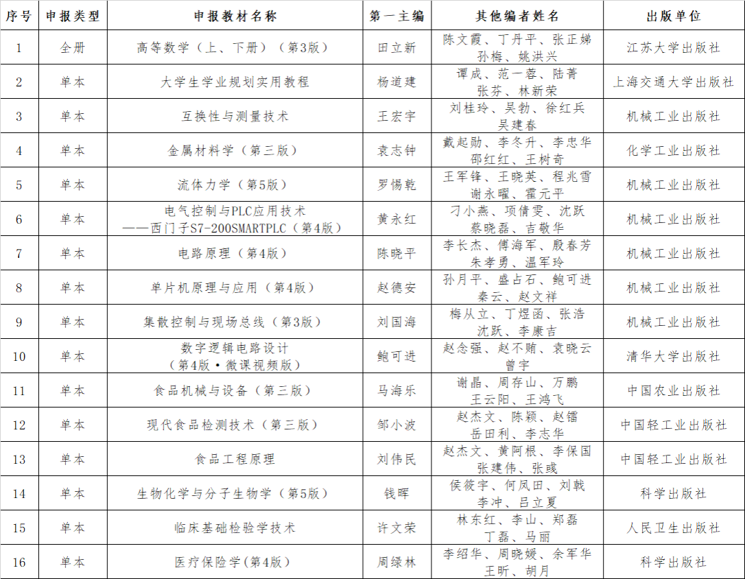 本次推荐遴选,beat365亚洲体育官方网站共获得推荐16本教材。