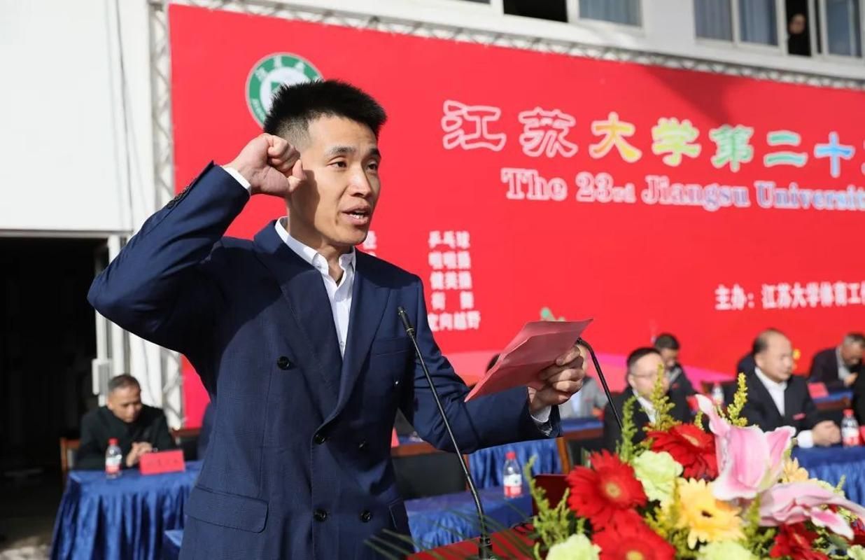 第22届全国大学生田径锦标赛男子甲组100米和200米金牌获得者、财经学院周健豪同学代表运动员宣誓。