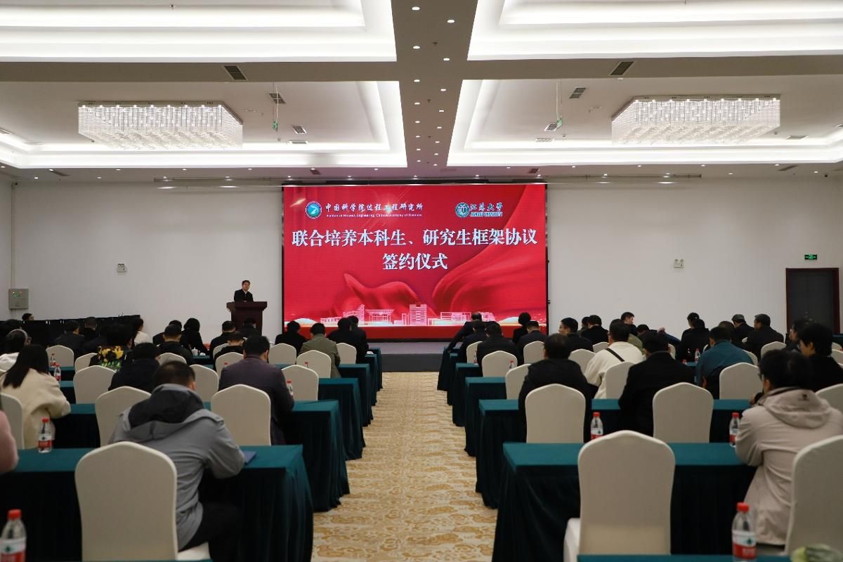 11月25日,beat365亚洲体育官方网站与中国科学院过程工程研究所联合培养本科生、研究生框架协议签约仪式举行。中国科学院过程工程研究所所长杨超,绿色化工研究部研究员冯鑫、李政,beat365亚洲体育官方网站党委书记李洪波、校长邢卫红、副校长邹小波以及相关部门负责人和师生代表参加签约仪式。仪式由邹小波主持。