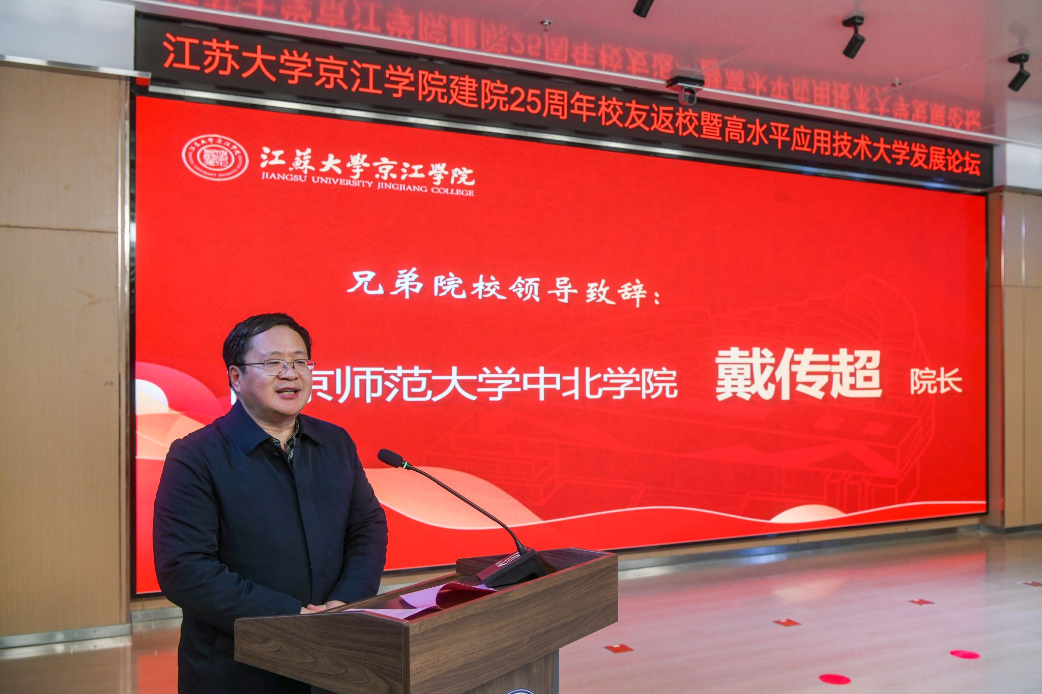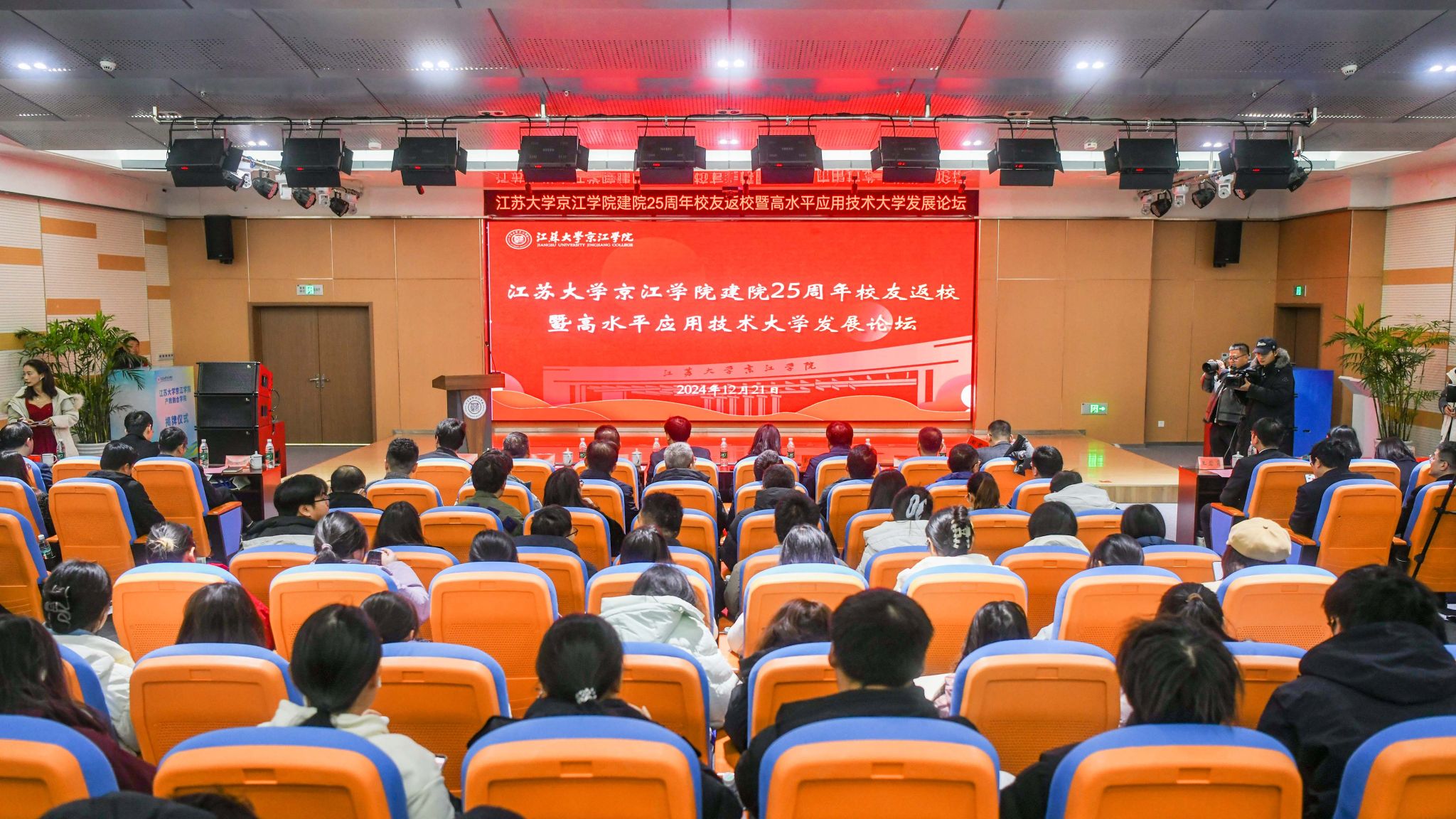 12月21日,京江学院在学术交流中心报告厅举行建院25周年校友返校暨高水平应用技术大学发展论坛。镇江市政协副主席、beat365亚洲体育官方网站副校长陈红,镇江市发展和改革委员会副主任朱华,南京师范大学中北学院院长戴传超,校友会与对外联络办公室主任李国昊,企业代表,京江学院全体院领导、校友代表、教师代表、学生代表出席大会。