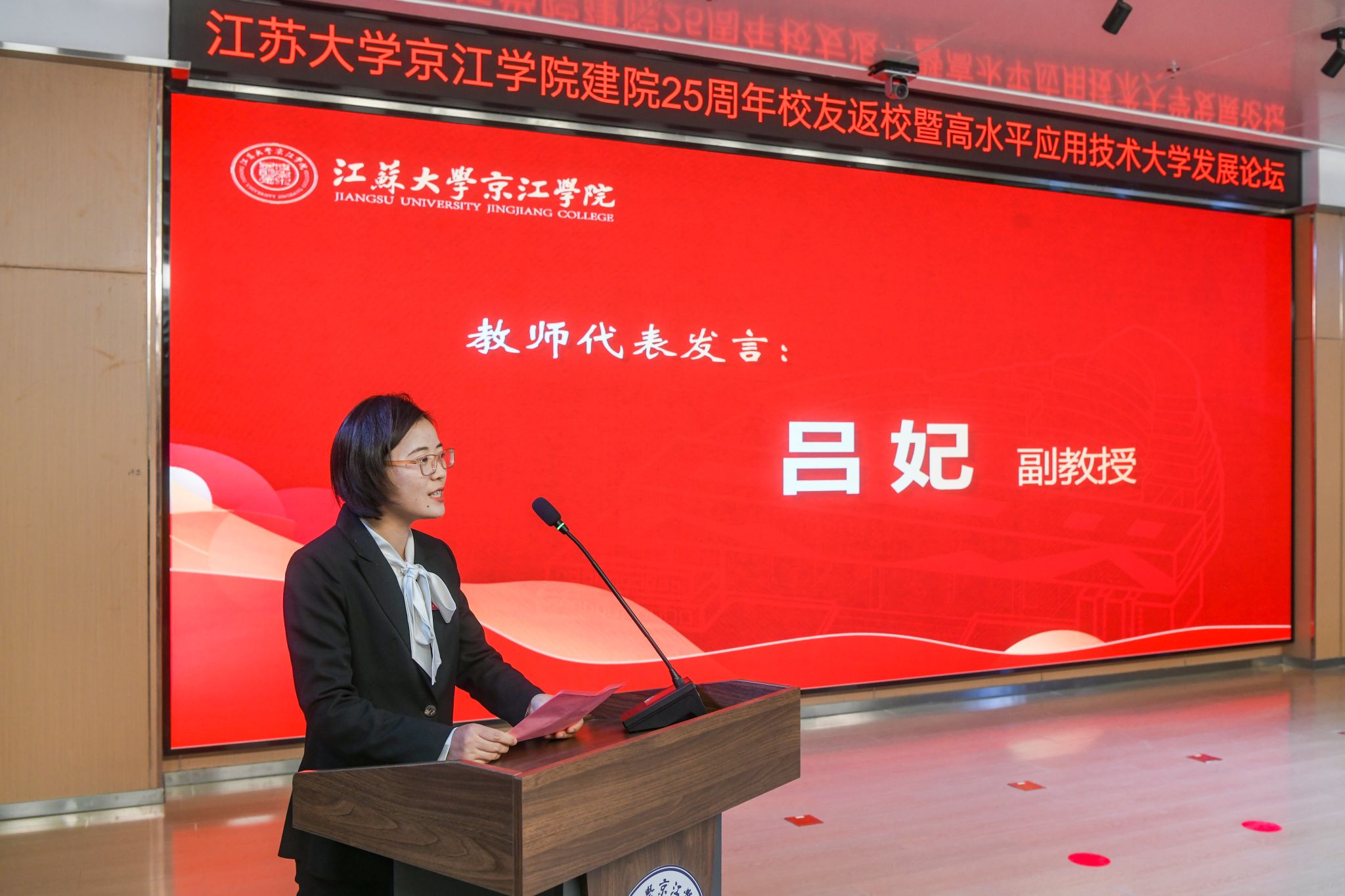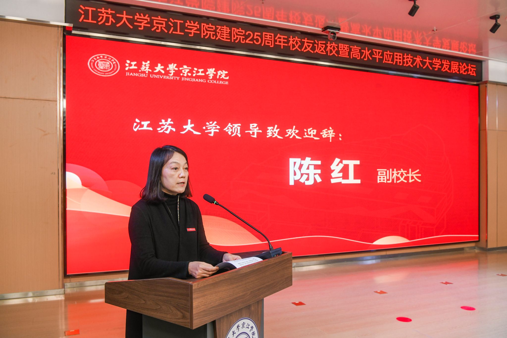 陈红致欢迎辞,她代表beat365亚洲体育官方网站向各位领导、各位嘉宾表示欢迎,向全体师生员工、广大校友致以问候,向关心支持京江学院发展的各级领导、各界朋友、兄弟高校表示感谢。陈红表示,25年来,京江学院紧紧依托母体beat365亚洲体育官方网站,事业发展呈现新面貌,高质量发展迈出新步伐。她希望全体师生同心协力,继续为实现高水平应用技术大学目标砥砺前行,为区域经济社会发展作出新的贡献。