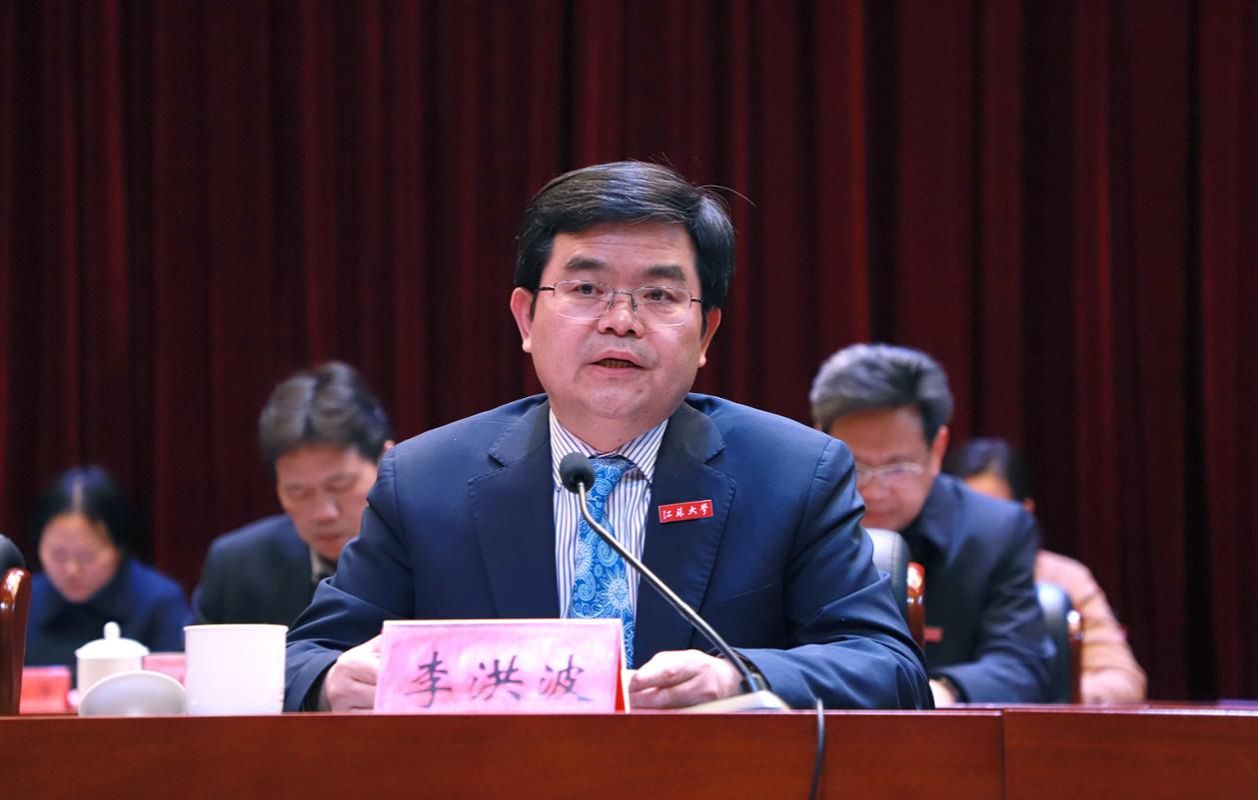 校党委书记李洪波发表讲话,他表示,过去一年,学校深入落实党的二十届三中全会精神和学校第五次党代会部署,以改革创新为牵引,全力推动事业高质量发展,党的领导进一步加强、党建引领保障效能进一步提升、全面从严治党进一步深化,取得了不少可圈可点的成绩,实现了贯彻落实第五次党代会精神的良好开局。李洪波说,2025年是学校“十四五”收官、“十五五”谋划之年,也是“双一流”创建的攻坚之年、冲刺之年,责任重大、任务艰巨。全校上下必须以党的二十大和二十届三中全会精神以及全国全省教育大会精神为指引,深入落实学校第五次党代会决策部署,锚定一流目标,深化改革创新,强化担当作为,努力干出更好成效、更优成绩,为学校冲刺“双一流”注入强大动能、提供强有力支撑。李洪波强调,要树牢改革创新理念、团结奋斗理念、担当作为理念,加快推进“双一流”创建;要全面抓好省委巡视整改、坚持不懈推进“六大行动”、科学总结谋划事业发展,奋力开创事业发展新局面;要扛起立德树人责任、管党治党责任、安全稳定责任,为事业发展提供坚强保障。李洪波说,梦虽遥,追则能达;愿虽艰,持则可圆。他要求全校上下坚持以习近平新时代中国特色社会主义思想为指导,深入落实党的二十届三中全会精神和学校第五次党代会部署要求,深化改革创新,坚持团结奋进,凝心聚力冲刺“双一流”,奋力谱写特色鲜明高水平大学建设新篇章。