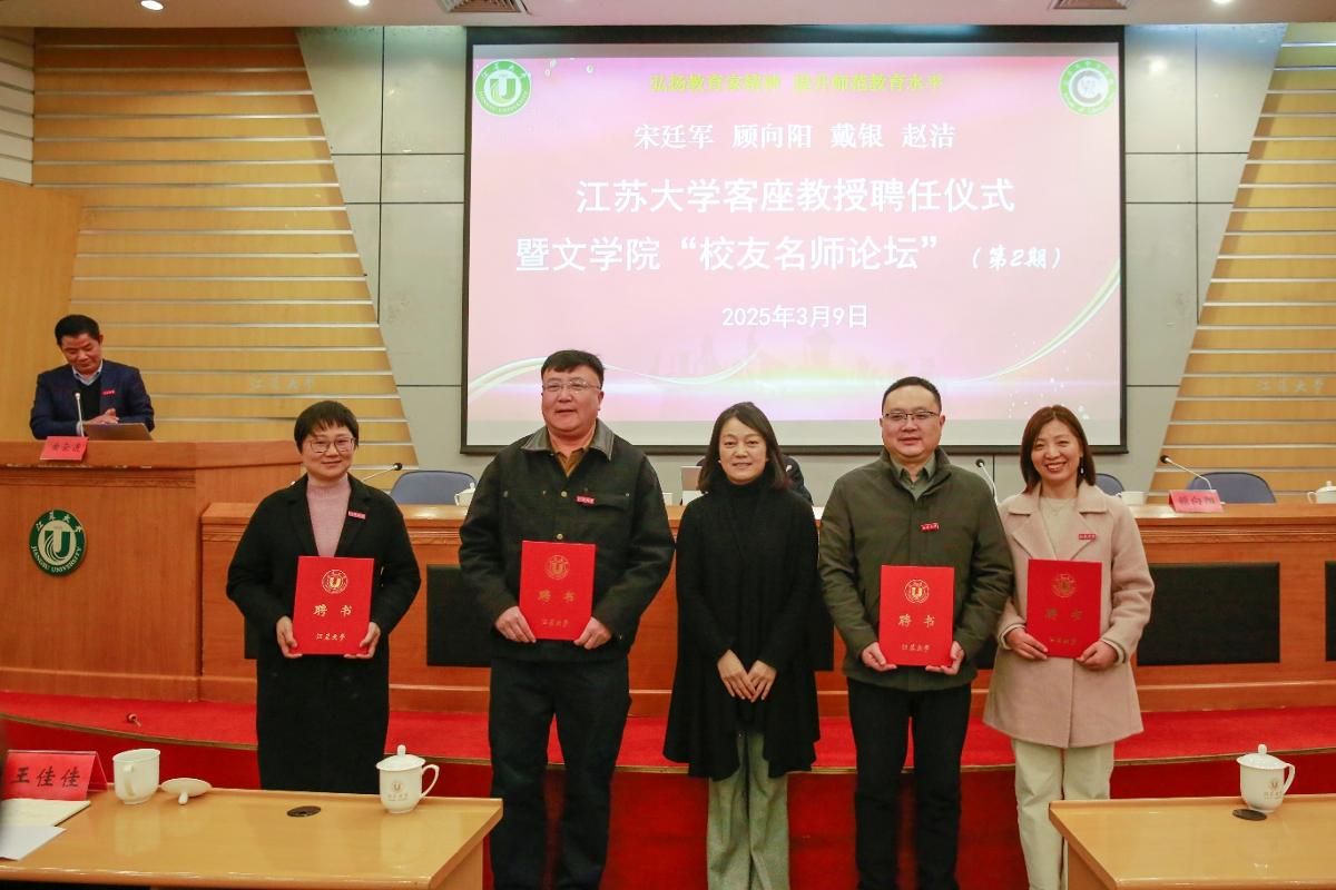 3月9日,beat365亚洲体育官方网站客座教授聘任仪式暨文学院“校友名师论坛”(第二期)在会议中心第一报告厅举行。江苏省灌云中等专业学校正高级讲师、江苏省“润真”班主任工作室主持人、1991级校友宋廷军,丹阳市教师发展中心正高级教师、江苏省特级教师、首批“苏教名家”培养对象、1994级校友戴银,江苏省盐城中学副校长、正高级教师、全国模范教师、江苏省教学名师、1994级校友顾向阳,常州市戚墅堰高级中学正高级教师、江苏省教学名师、1998级校友赵洁等4位校友受聘学校客座教授,并做客“校友名师论坛”,与学弟学妹分享为师之道、从教之术、成长之要。