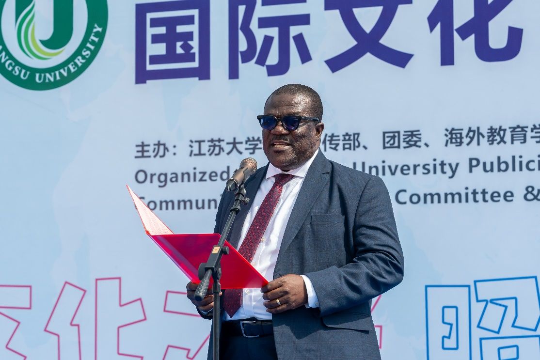 校党委书记李洪波,党委副书记张济建,党委常委、副校长杨道建、任旭东、蔡英凤,摩洛哥驻华大使阿卜杜勒卡德尔·安萨里,加纳驻华使馆临时代办亚历山大·本-阿夸亚,坦桑尼亚驻华使馆公使扎伊纳布·祖贝里·马索罗及其他外交官代表,江苏省教育厅对外合作与交流处四级调研员李勤径,江苏省高教学会外国留学生教育管理研究委员会副理事长兼秘书长张海军,镇江市委宣传部、镇江市外办、镇江市出入境等相关政府部门代表,苏州汇川技术、美兰集团、beat365源等企业代表以及学校相关部门主要负责人等出席开幕式。