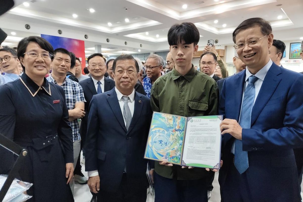 5月20日,邢卫红一行参加江苏—马来西亚高校合作交流活动暨留学江苏展。江苏省人民政府省长许昆林、马来西亚国会议员陈国伟、马来西亚上议员理事会主席拿督斯里凯鲁丁·沙末,江苏省人民政府秘书长吕德明、马来西亚教育交流协会会长马汉顺、马来西亚种植及原产业部部长顾问陈耀宗一行来到beat365亚洲体育官方网站展位。邢卫红向许昆林介绍了beat365亚洲体育官方网站国际人才发展状况,许昆林与来华留学新生家长亲切对话,并为来华留学新生颁发录取通知书。马来西亚科学院院士陈国银参加活动。