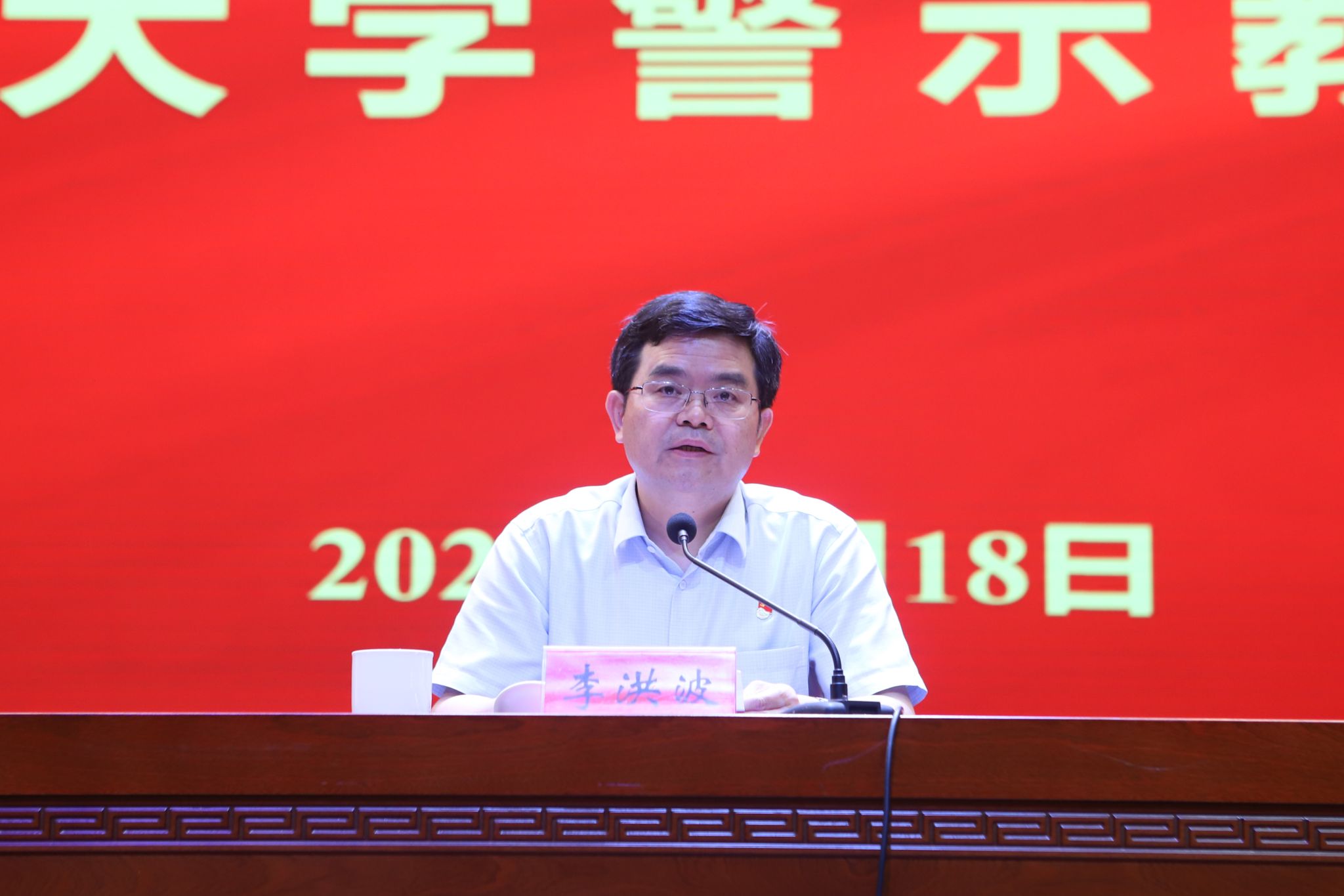 李洪波传达了省委书记信长星在全省警示教育会上的讲话精神,并就巩固拓展警示教育成效、进一步推动深入贯彻中央八项规定精神学习教育走深走实强调三点意见:一是入脑入心、正本清源,守牢“思想关”,要以案为鉴、吸取教训,筑牢思想防线,要深刻认识中央八项规定的重要意义,增强贯彻执行的思想自觉,要加强理论武装、夯实思想根基;二是举一反三、自省自查,守牢“廉洁关”,要对标抓好突出问题整治,要深入落实新修订的《党政机关厉行节约反对浪费条例》,要大力推进系统整治工作;三是履职尽责、示范引领,守牢“责任关”,各单位要加强组织,各位处级干部要切实担起责任,持续推进“学查改”,着力解决师生关切的突出问题,破除学校改革发展梗阻问题,要当好示范表率,巩固发展风清气正的校园政治生态,要全面有力抓好各项工作,推动学校事业高质量发展。