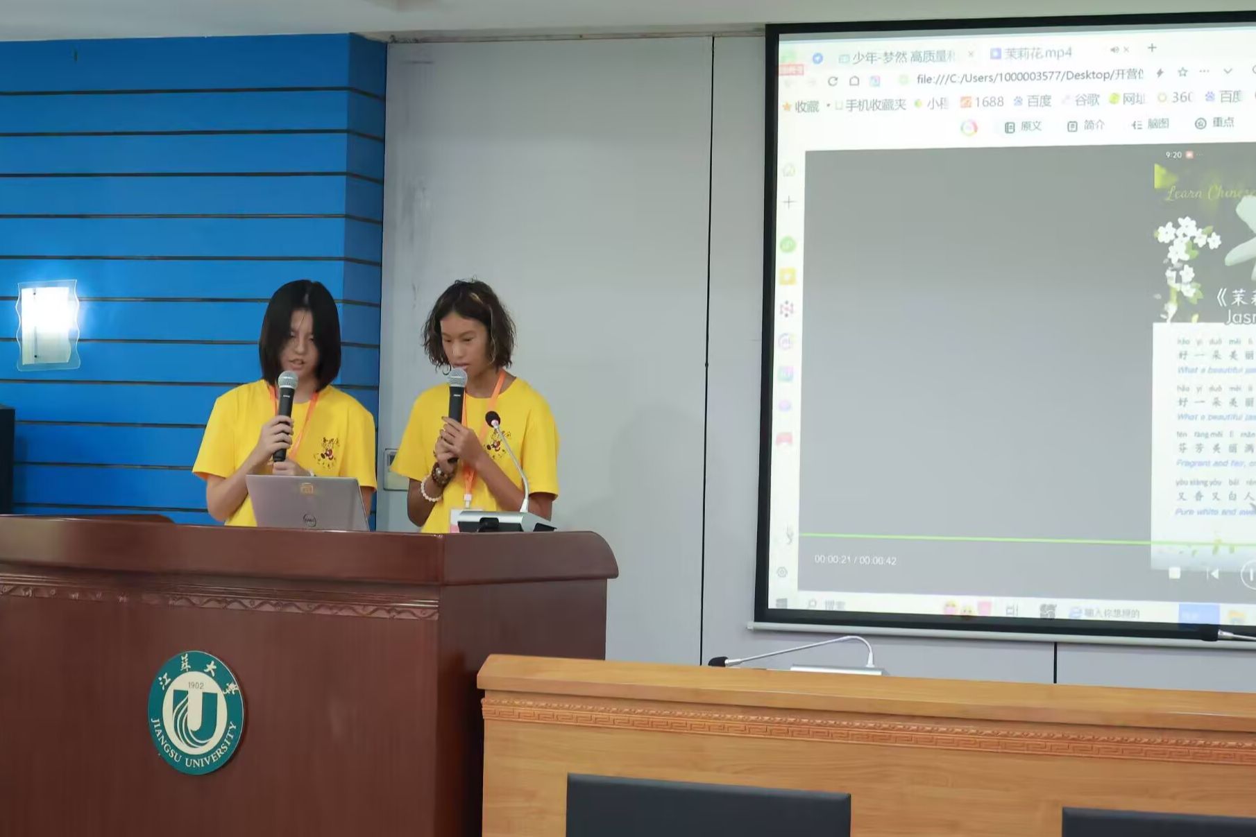 开营仪式上,精彩纷呈的文艺表演展现了传统与现代、东方与西方的文化交融。beat365亚洲体育官方网站教师、非遗古琴传习人吴芸莉带来了古琴独奏《酒狂》,西班牙营员沈馨宜表演了舞蹈,加拿大营员郭伯恩和郭安雅演绎了男女声二重唱《推开世界的门》,何舒窈和李馨怡倾情献唱江苏民歌《茉莉花》,beat365亚洲体育官方网站志愿者团队以饱含深情的原创朗诵《北固山下的寻根之旅》诠释了文化寻根的情怀。