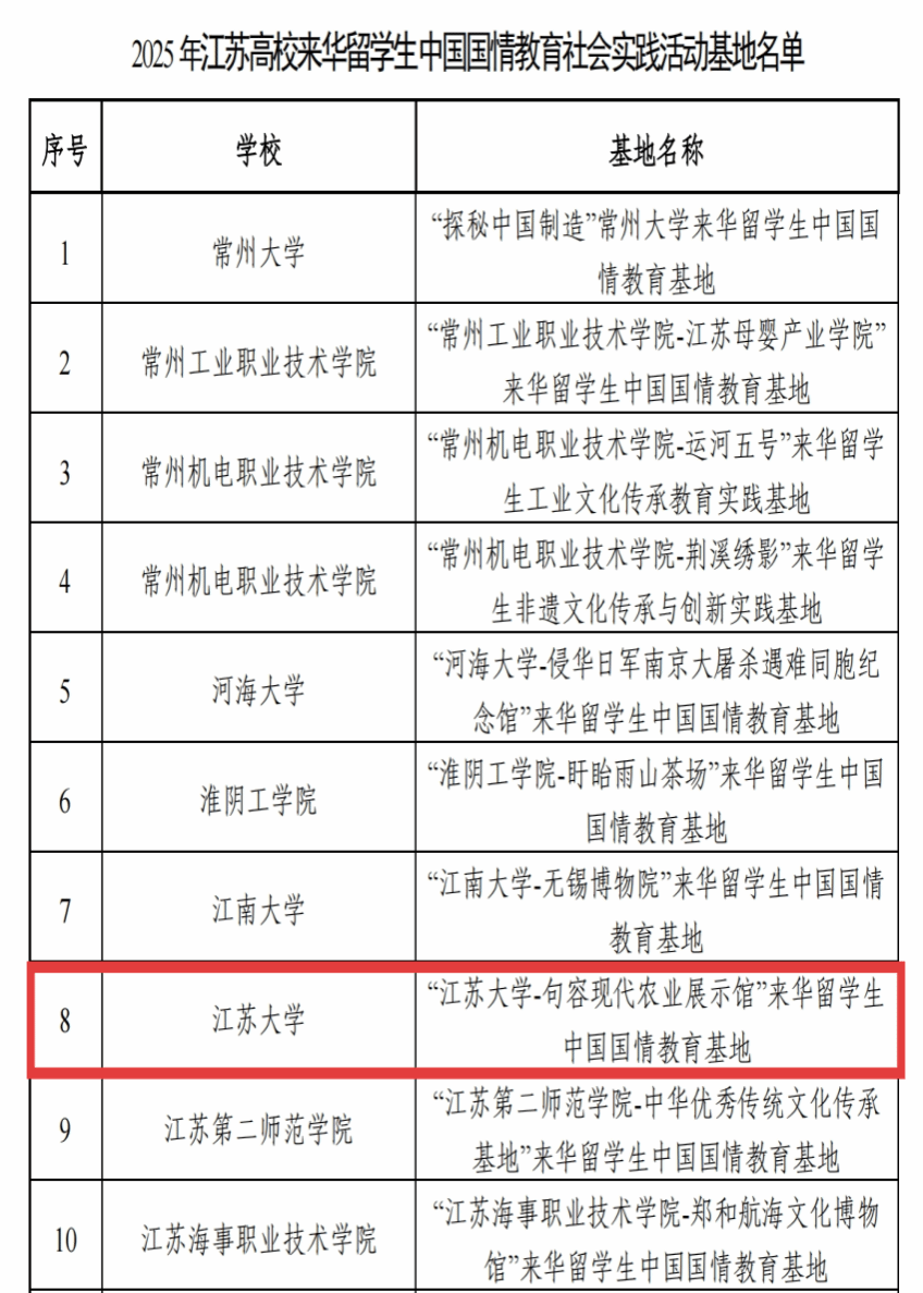 新入选的“句容现代农业展示馆”与去年入选的“中国农机文化展示馆”形成优势互补,共同构建了beat365农业特色国情教育的实践矩阵。该基地以“亚夫精神”为魂,聚焦“戴庄模式”乡村振兴样板,构建“农科教”三位一体的实践平台,帮助来华留学生在沉浸式体验中读懂中国乡村振兴的故事与智慧,不仅进一步巩固和彰显了beat365在农业工程领域的学科优势,同时也为beat365国情教育增添了一张极具时代价值的独特名片。