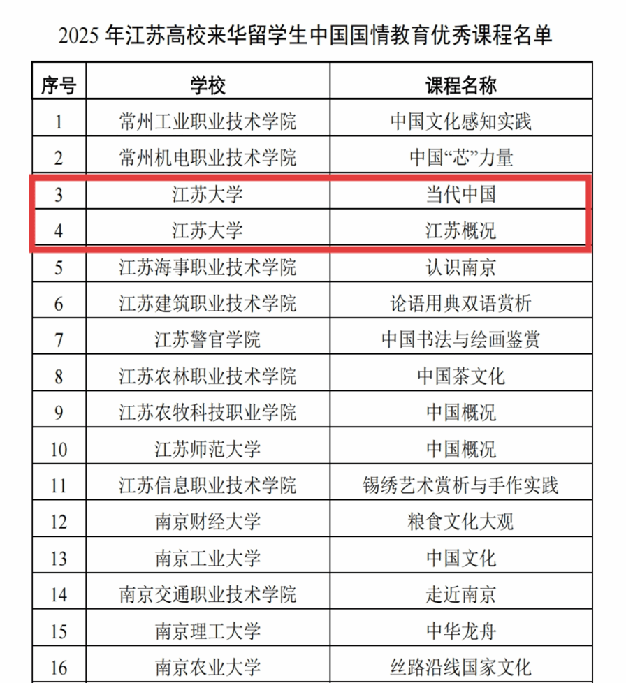 新入选的两门课程各具特色,实现了beat365来华留学生国情教育的创新与深化。“当代中国”课程以“人类命运共同体”理念为引领,创新采用“从世界看中国”与“从中国看世界”的双向视角,将中国在脱贫攻坚、经济发展、生态保护等十五个方面的现代化成就与全球视野相结合,引导留学生深刻理解中国式现代化道路的内在逻辑与世界意义,以及中国共产党在其中发挥的关键作用。“江苏概况”课程深度聚焦地方特色,紧扣beat365服务地方发展的定位,致力于将课程打造为“知江苏、懂中国、联世界”的桥梁。课程系统讲授江苏作为“经济大省、文化强省、创新高地”的省情知识,更通过引入《水韵江苏》等权威教材、整合镇江博物馆等地方实践资源、运用AI辅助教学等数字化手段,显著提升课程的时代性、实践性与互动性,有效培养了留学生的跨文化沟通与创新实践能力。