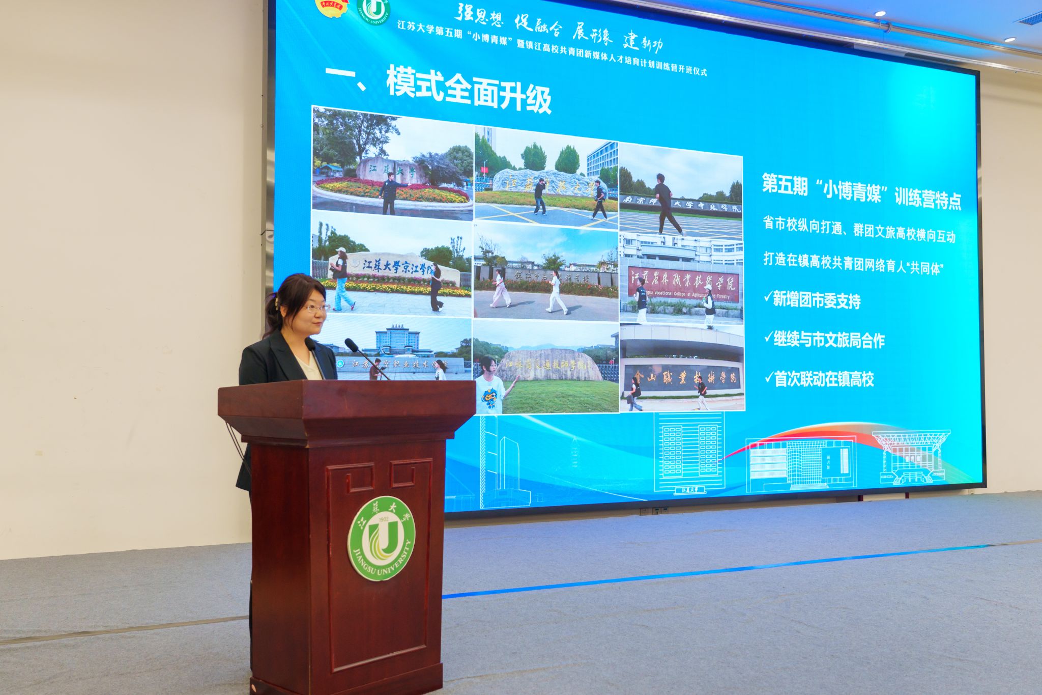 10月18日,由共青团beat365亚洲体育官方网站委员会、共青团镇江市委员会、镇江市文化广电和旅游局联合主办的beat365亚洲体育官方网站第五期“小博青媒”暨镇江高校共青团新媒体人才培育计划训练营在学校青教公寓多功能厅举行。共青团江苏省委新媒体发展中心主任孙洪洋,共青团镇江市委书记杜剑,镇江市文化广电和旅游局党委委员、副局长曹玮,校团委书记张永强,共青团镇江市委副书记徐加伦等出席活动,训练营班主任、朋辈指导员及9所在镇高校师生代表约150人参加活动。会议由校团委副书记刘丹主持。