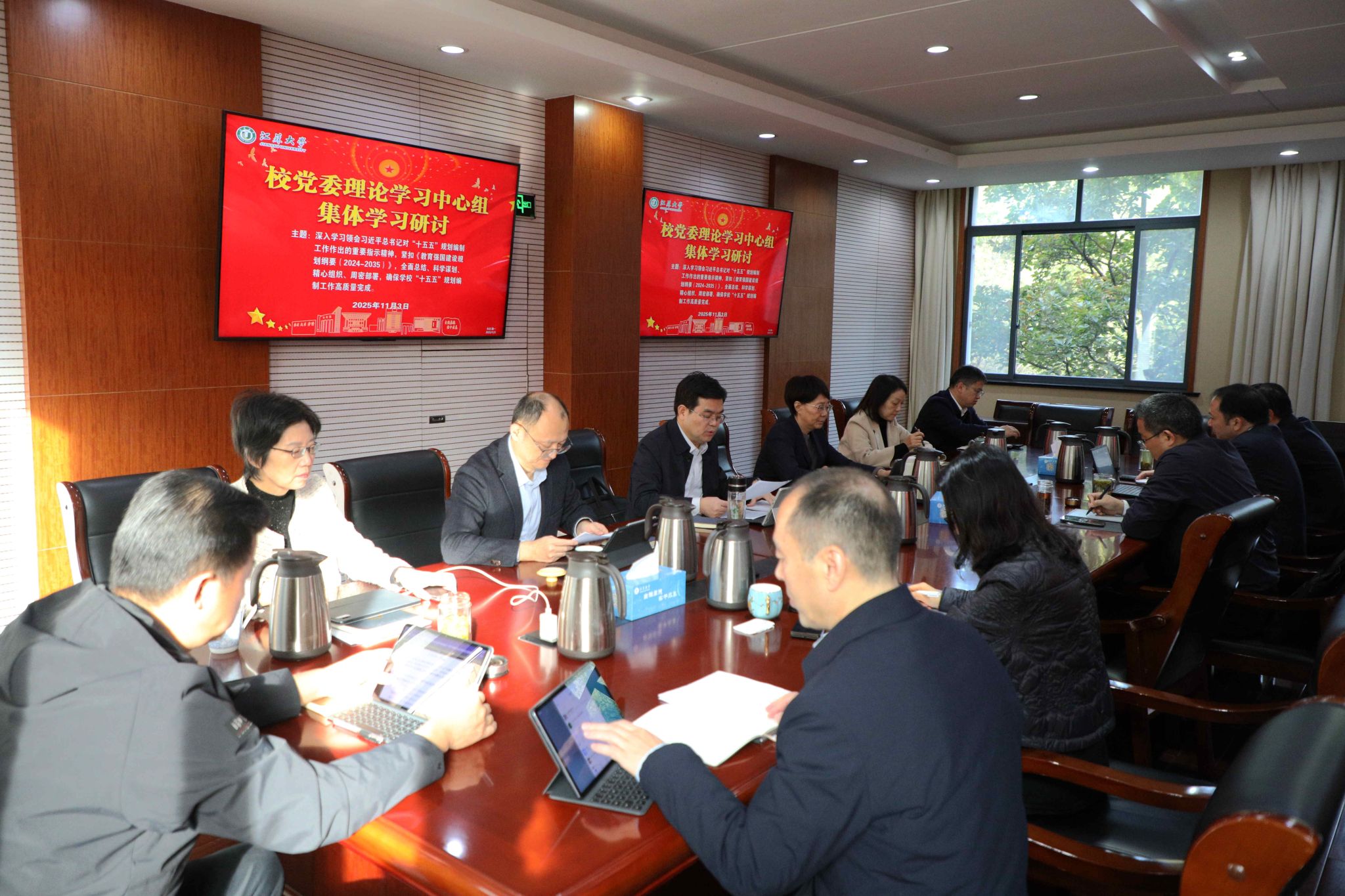 11月3日,校党委理论学习中心组在行政一号楼201会议室围绕习近平总书记对“十五五”规划编制工作作出的重要指示精神和《教育强国建设规划纲要(2024—2035年)》开展集体学习研讨。全体校党委理论学习中心组成员参加学习,集体学习研讨由校党委书记李洪波主持。