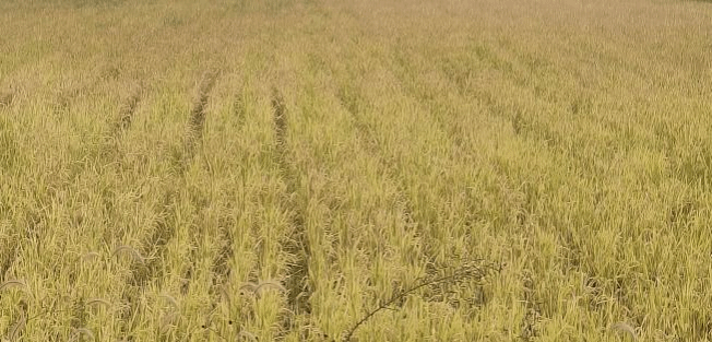 示范区面积150亩,测产品种选用甬优4901。3月16日播种,4月16日移栽,集成应用适期早播、整盘气吸式精量播种、工厂化保温育秧、无人驾驶智能宽窄行插秧、底土载肥减量施肥、种收共轨的再生稻直行无碾压对行收获等关键技术。再生季水稻处于黄熟期长势均匀一致,结实正常,穗大粒饱,基本无病虫草等危害、无倒伏。