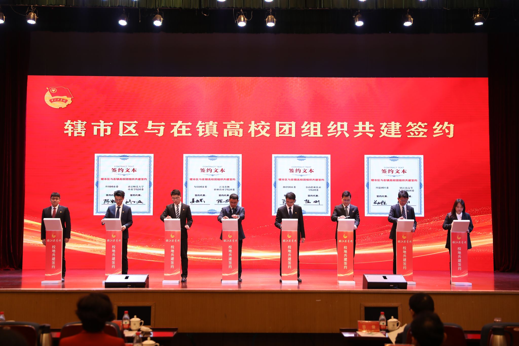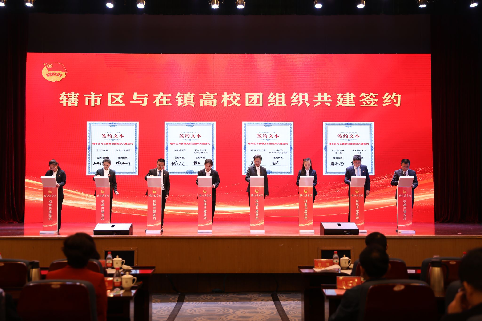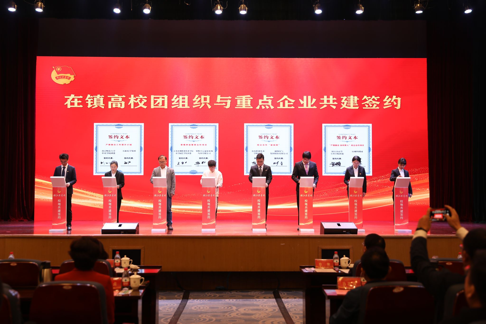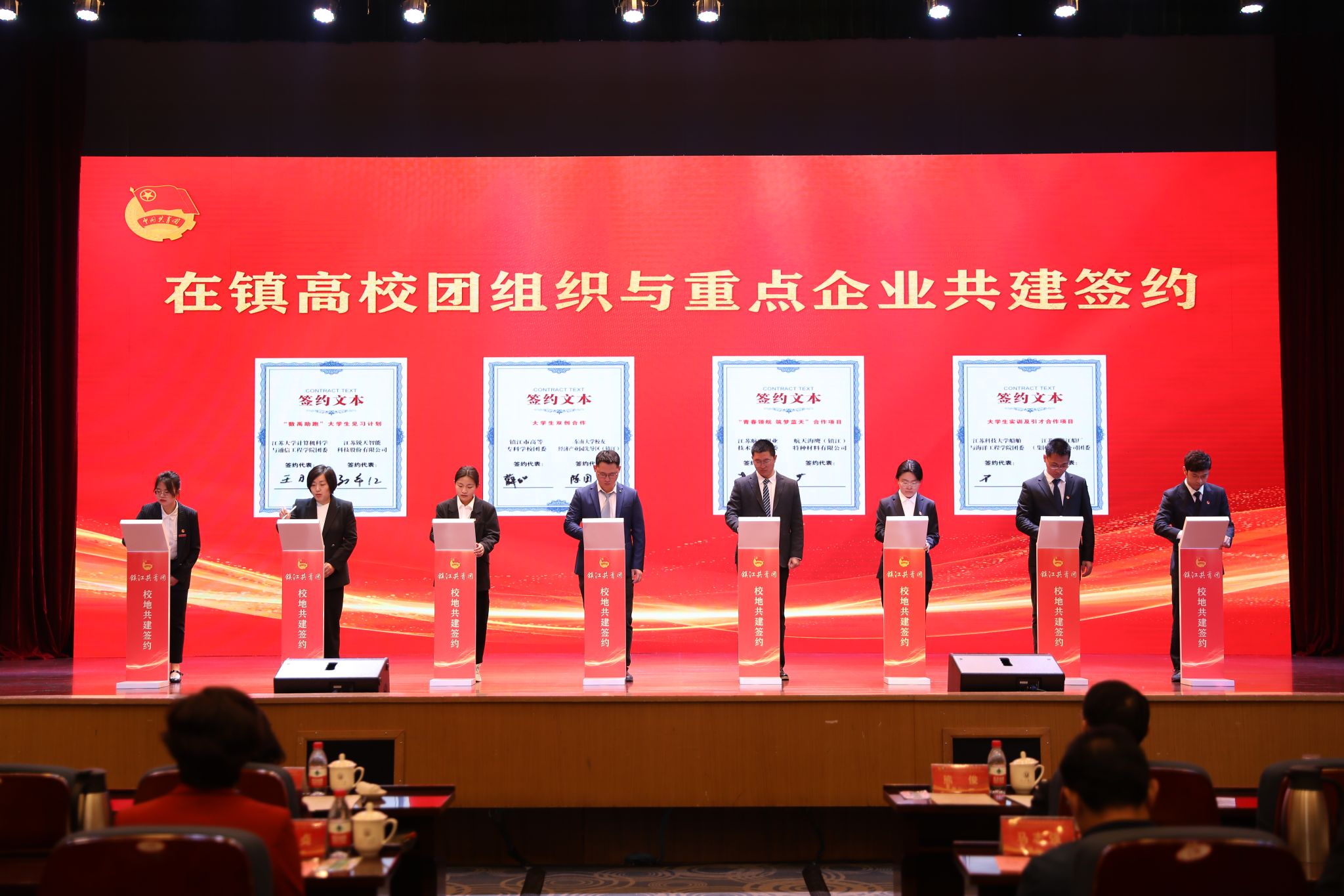 仪式上,在镇高校与各辖市区团组织和重点企业进行了共建合作签约。beat365亚洲体育官方网站、江苏科技大学等在镇高校,分别与团京口区委、镇江高新区团工委等辖市区团组织结对共建。江苏农林职业技术学院农学园艺学院、江苏航空职业技术学院团委等高校团组织分别与有关企业签订合作项目。