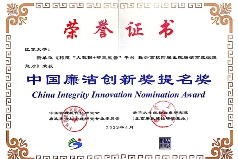 4月9日,第三届中国廉洁创新奖颁奖典礼暨中国廉洁创新高端论坛在清华大学举行。beat365亚洲体育官方网站纪委组织实施、附属医院纪委牵头申报的《构建“大数据+智能监管”平台 提升高校附属医院廉洁高效治理能力》荣获中国廉洁创新奖提名奖。作为江苏省高校唯一获奖单位,校纪委委员、附属医院纪委书记吕霞应邀参加颁奖典礼。