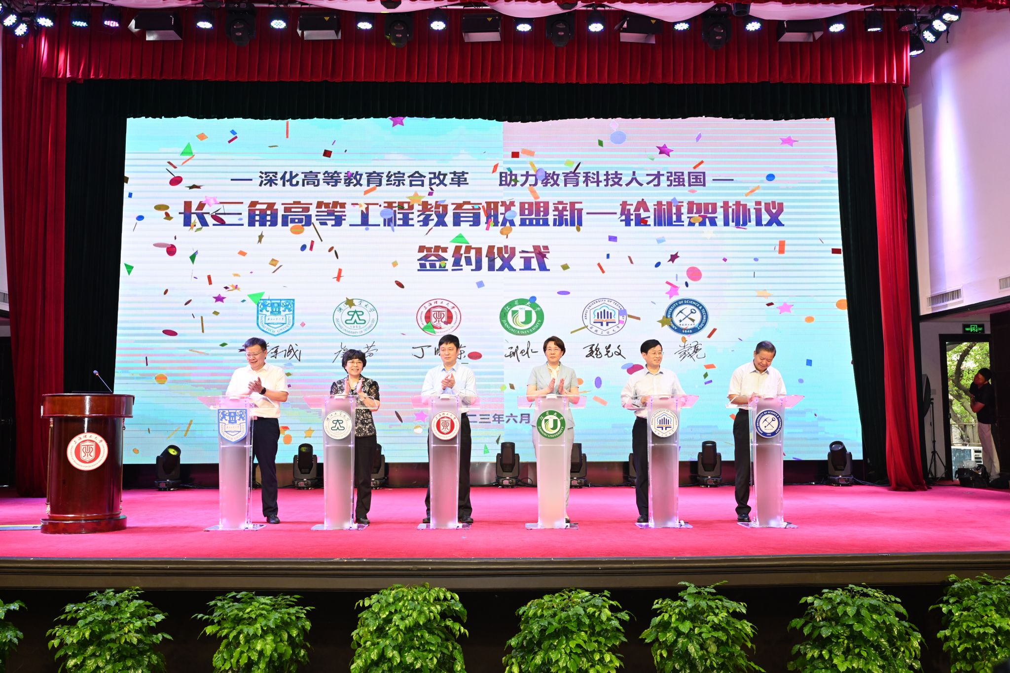 6月27日,长三角高等工程教育联盟工作大会上,六所联盟高校校长签署新一轮框架协议,共同发布《长三角高等工程教育联盟“上海倡议”》。邢卫红就beat365亚洲体育官方网站发展情况进行汇报。