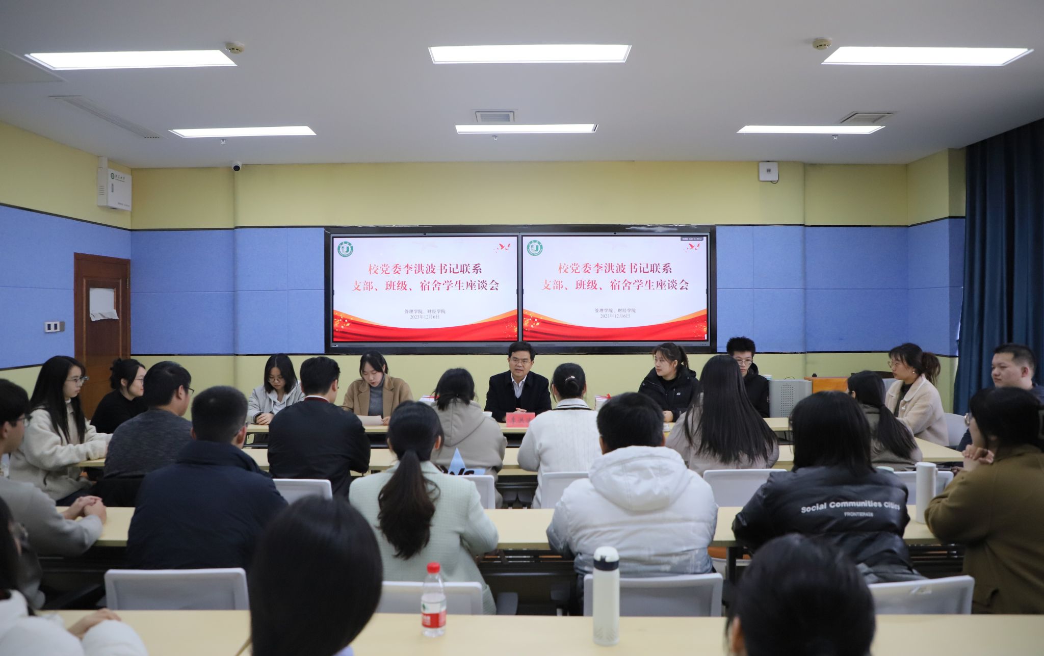 初冬校园,气温骤降。12月6日,beat365亚洲体育官方网站党委书记李洪波走进所联系的班级、党支部、寝室同学中间,通过参与学生班会、师生座谈、与联系学院学生共同为树木刷白等方式,与学生面对面,共话大学生活。