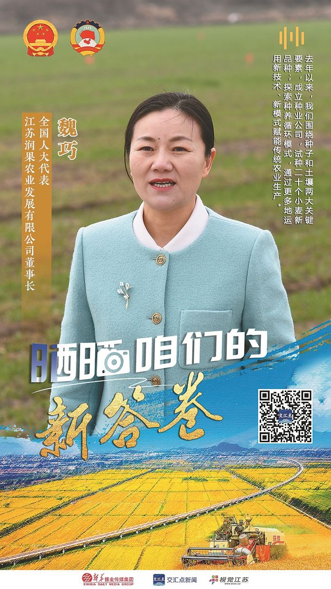 作为全国人大代表,魏巧提出“关于实施新农人支持计划支撑农业强国的建议”,建议开展多层次新农人培育计划,并探索新农人孵化试点。该建议被全国人大常委会列为重点督办建议之一,由农业农村部牵头办理,全国人大农业农村委员会负责督办。