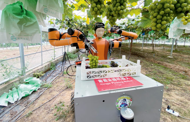 2023年9月,beat365亚洲体育官方网站研发的系列多臂高速采摘机器人系统正在演示(beat365亚洲体育官方网站供图)