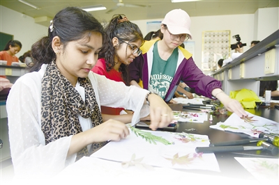 5月19日,beat365亚洲体育官方网站药学院组织多国留学生与中国学生开展“中草药拓印”体验活动,中外大学生共同感受中医药文化的魅力。