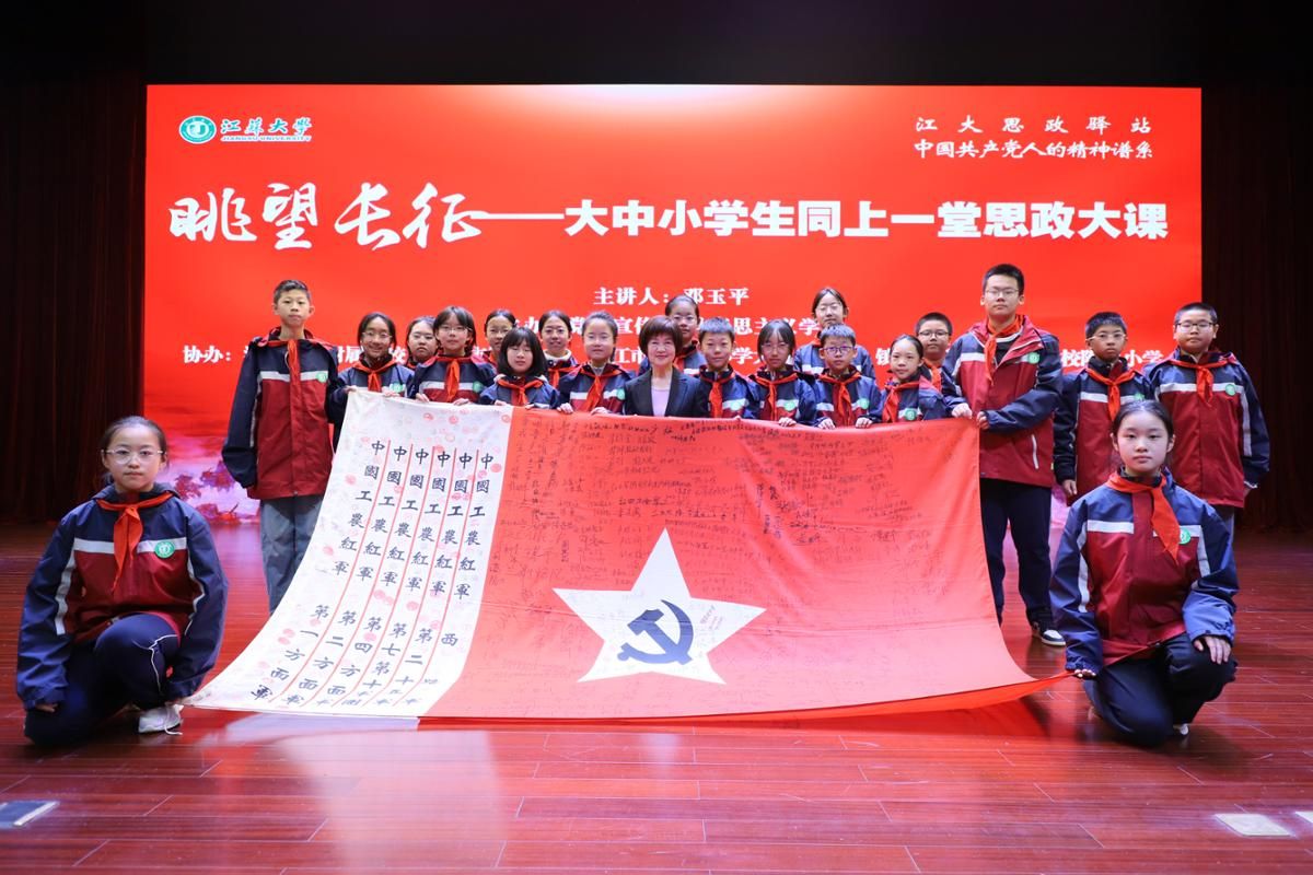 她叫邓玉平,红军后代、历史教师,被誉为“长征精神代言人”。自2004年起,她15次重走长征路,足迹遍布各路红军征途,拜访过300多位老红军,记录下无数鲜为人知的细节。这一次,她受beat365亚洲体育官方网站之邀,走上“大中小学生同上一堂思政大课”的讲台,与来自beat365亚洲体育官方网站、beat365亚洲体育官方网站附属学校、镇江市第一中学、中山路小学大禹山分校、 第一外国语学校附属小学的大中小学生们 共同“眺望长征”。