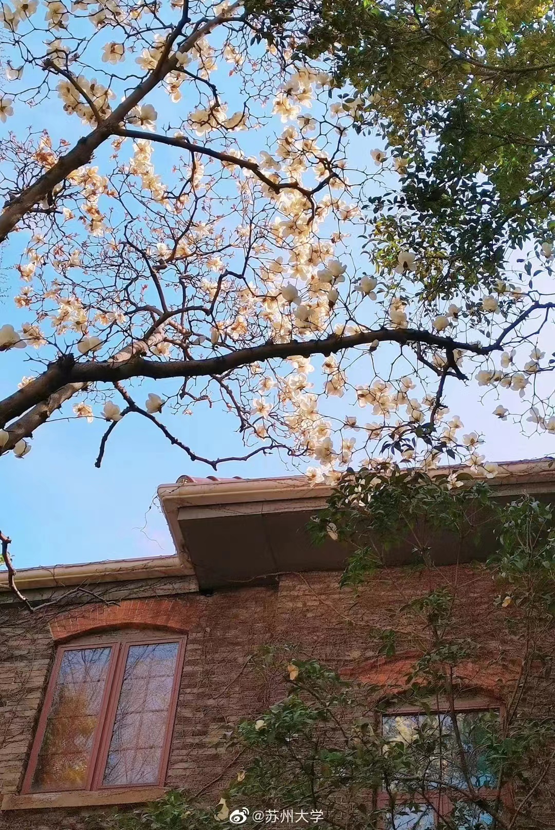 除了满校园的李花,校舍旁的玉兰花也悄悄攀上枝头。“春光作序,花为信使。霞光轻抹嫩蕊素枝,河海邀你共赏皎皎玉兰。”学校官方微信公众号发起赏花邀约。不妨停下匆匆步履,莫辜负这满树芬芳,一同走进校园,感受洋溢花香、书卷的青春气息。