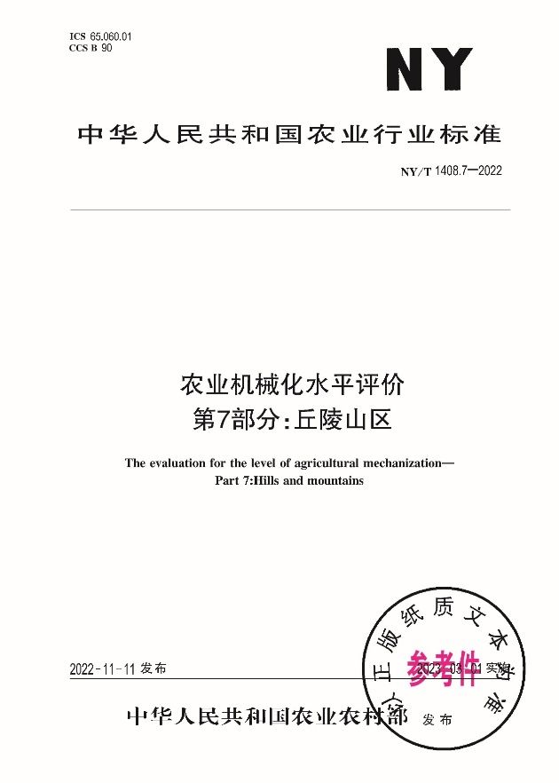 长期以来,受到地形条件限制,我国丘陵山区农业机械化水平极为低下,在农业劳动力成本快速攀升背景下严重影响了丘陵山区农产品竞争力。即使近年来大量推广使用小型农机,但由于低效率特征对丘陵山区农产品竞争力提升也极为有限。通过丘陵山区农田宜机化改造,改善农机作业和通行条件提升农机作业效率,是一条被国际反复验证的破解路径。《丘陵山区农田宜机化改造技术规范(NY/T 4256—202)》回答了如何进行农田宜机化改造,并规范了在农田宜机化改造过程中的机耕道、地块、下田坡道具体设计参数。同时,丘陵山区种植结构复杂,受到地形条件影响的不仅有种植业还有林果业,如何科学合理评价丘陵山区农业机械化水平,在《农业机械化水平评价 第7部分:丘陵山(NY-T 1408.7-2022)》有所规范。(中国农业装备产业发展研究院)
