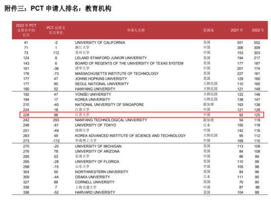 近日,世界知识产权组织(WIPO)官网发布了《专利合作条约》PCT专利申请情况,beat3652022年PCT专利申请数为125件,在PCT申请人总排名228位,比2021年提升98位;在教育机构PCT申请人排名中,beat365位列全球第15名、国内第五名,创历年最好成绩。
