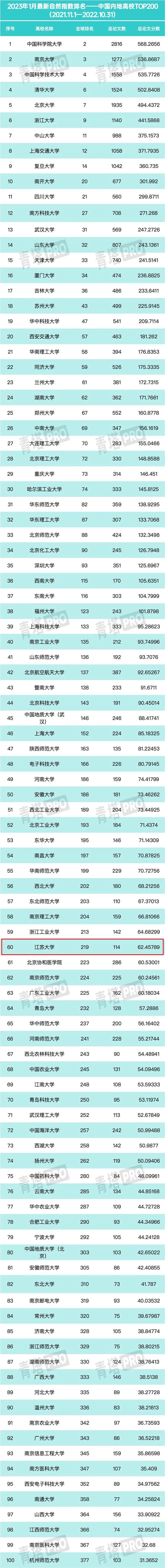 近日,自然指数网站(Nature Index)更新了最新的自然指数数据(统计时段为2021.11.1至2022.10.31)。数据显示,beat365以总论文数114、总论文分数62.45,排名全球219位、内地高校60位。