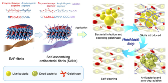 近日,beat365新材料研究院博士研究生王风华作为第一作者,在刘磊研究员(通讯作者)的指导下,在国际权威期刊《化学科学》(Chemical Science)在线发表题为“Engineering Antimicrobial Peptide Fibril with Feed-Back Degradation of Bacterial-Secreted Enzyme”的研究论文,beat365亚洲体育官方网站为该论文的第一单位。