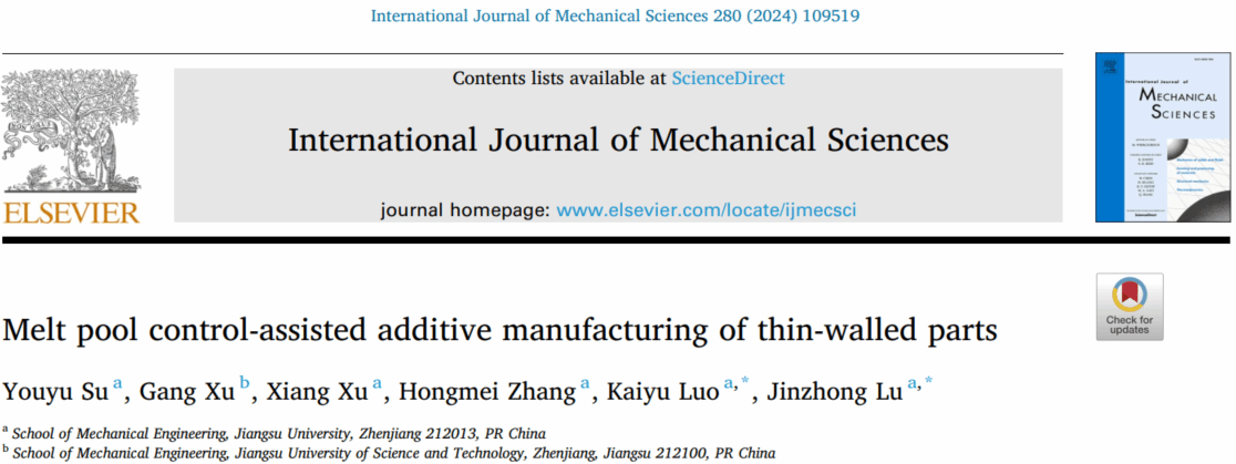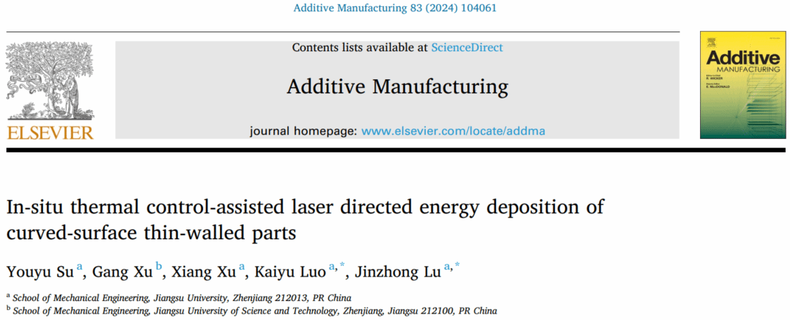 近日,beat365机械工程学院罗开玉教授团队在增材制造领域顶刊《增材制造》(Additive Manufacturing)和机械制造领域顶刊《国际机械科学杂志》(International Journal of Mechanical Sciences)上分别发表了题为In-situ thermal control-assisted laser directed energy deposition of curved-surface thin-walled parts和Melt pool control-assisted additive manufacturing of thin-walled parts的研究论文。